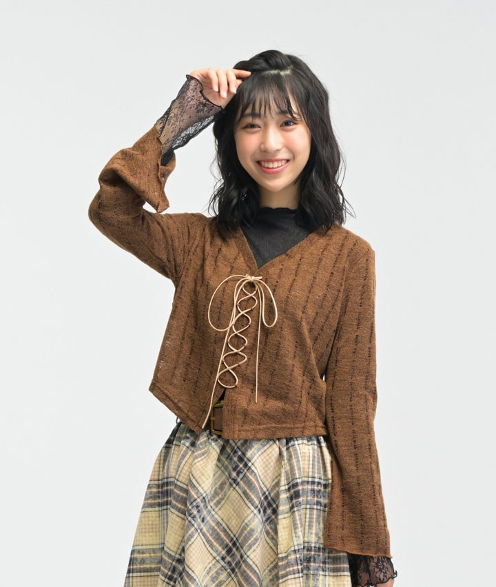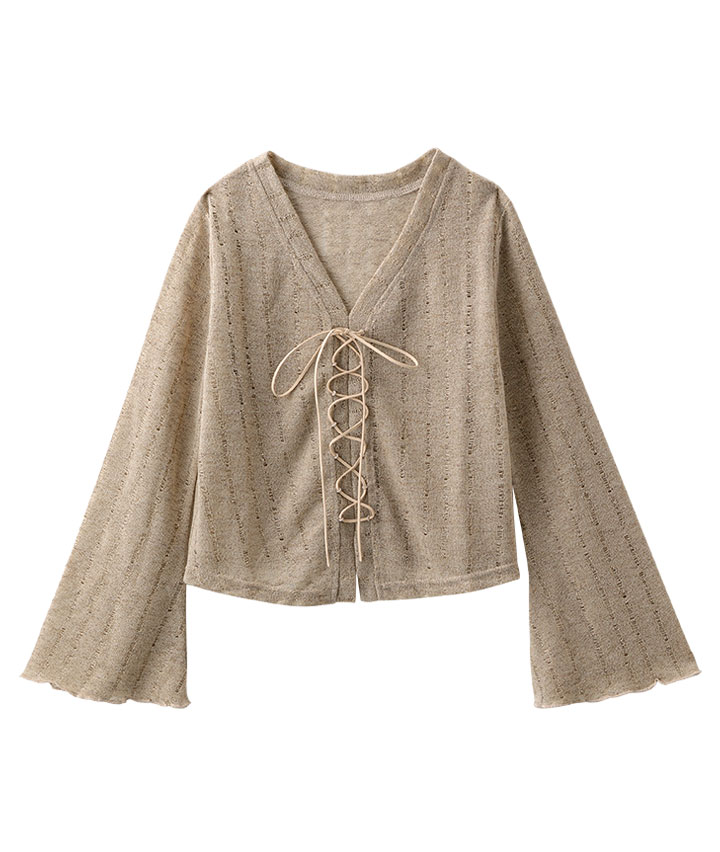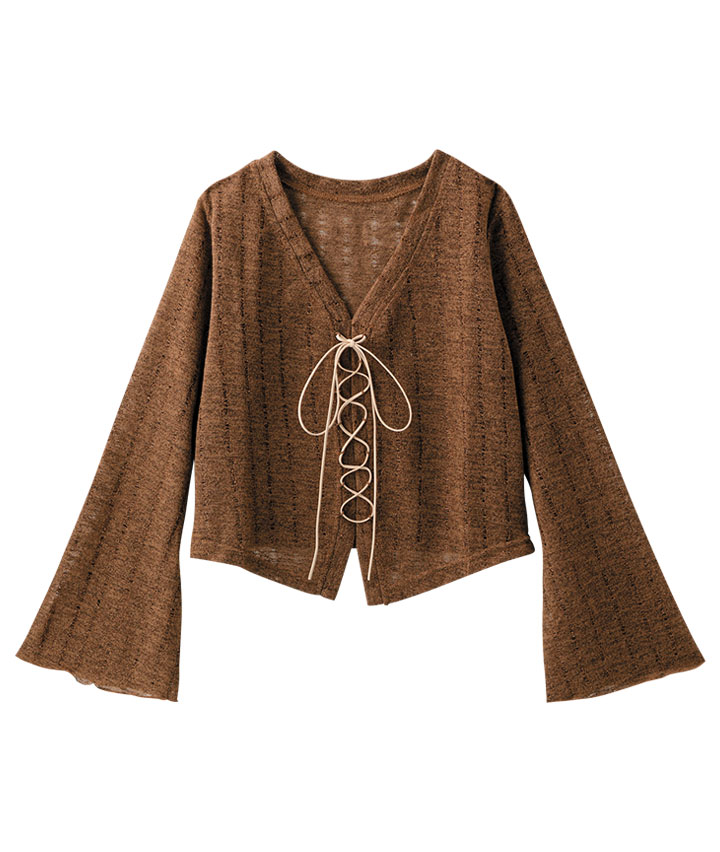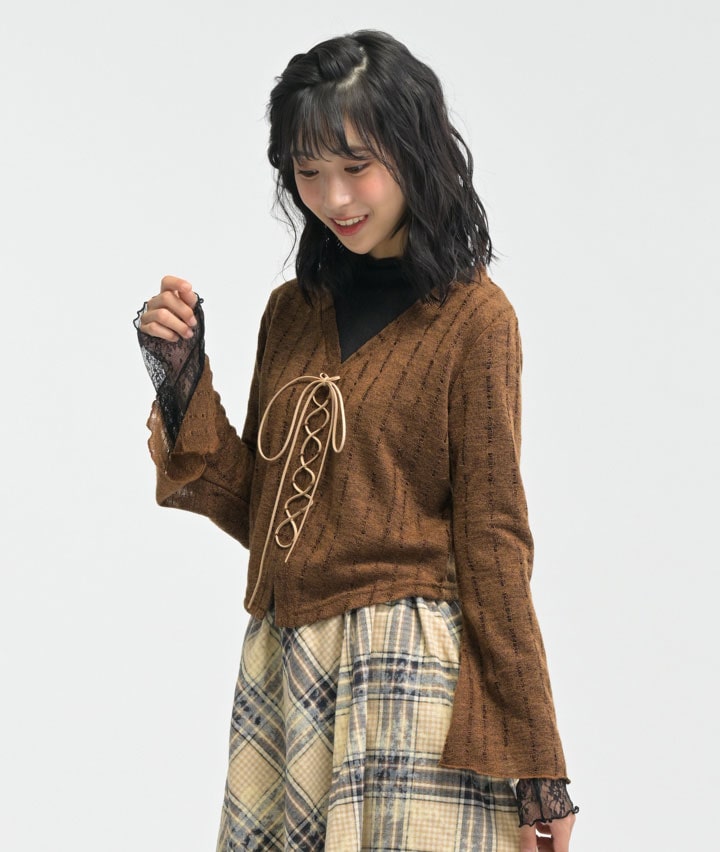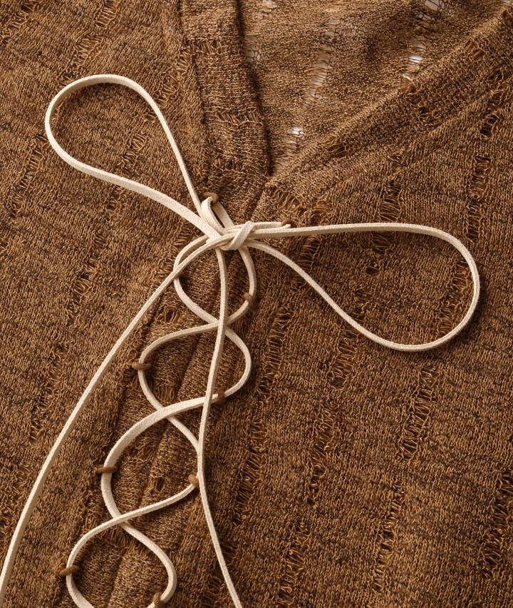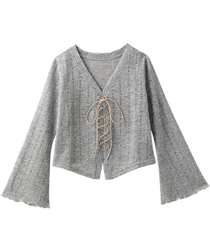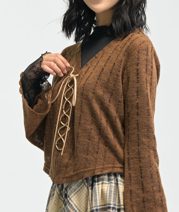 ・トレンドのレースアップデザインのニットソー素材のプルオーバーです