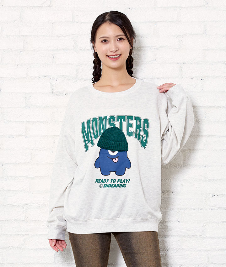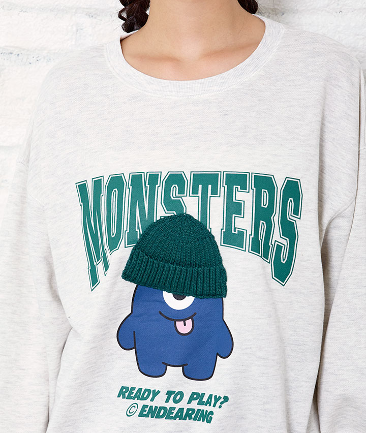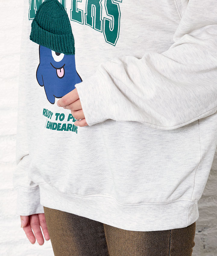 ・ニット帽を被った、モンスターグラッフィックがポイントのプルオーバー