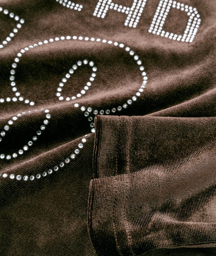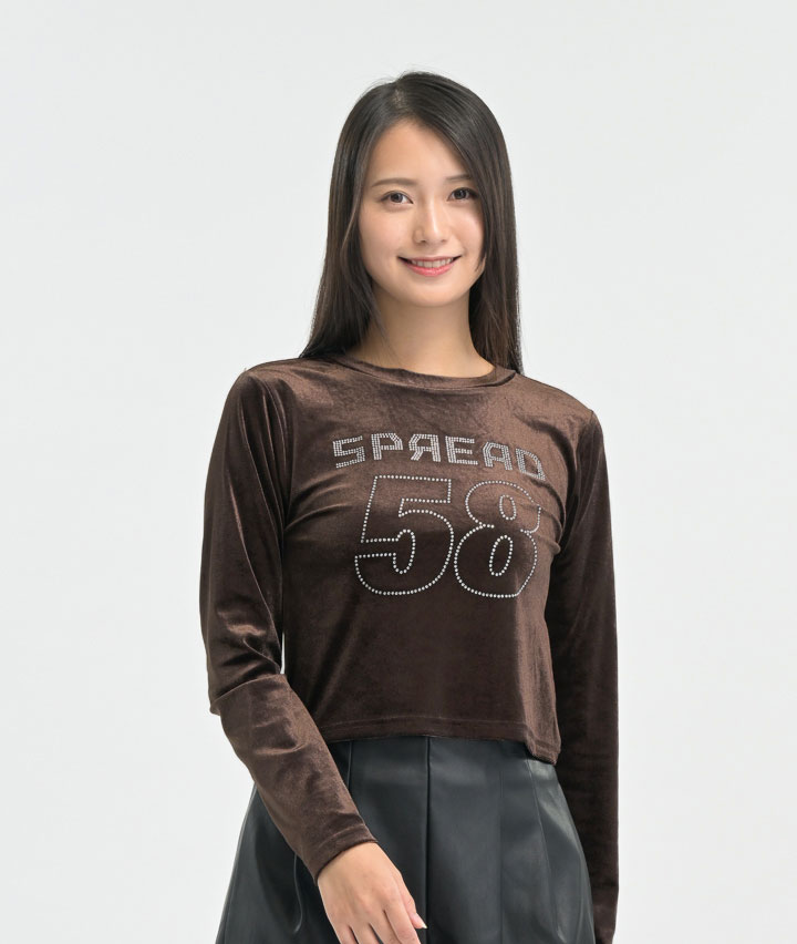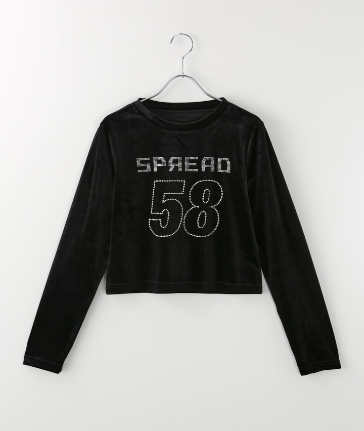 ・トレンドであるナンバリングのラインストーンロゴのベロアプルオーバーです。