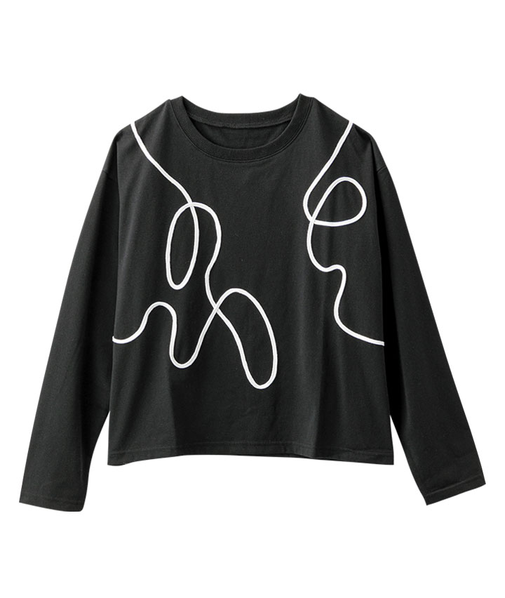 ・ニュアンスたっぷりなコード刺繍入りのTシャツ。流れるようなロゴのイメージで、大人かわいい雰囲気です。