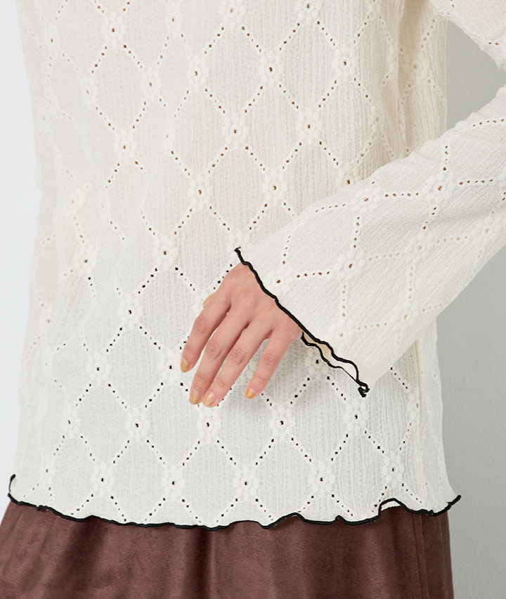 ・程よいレース感でレイヤードもしやすく、秋から春先までロングシーズン活躍するアイテムです。