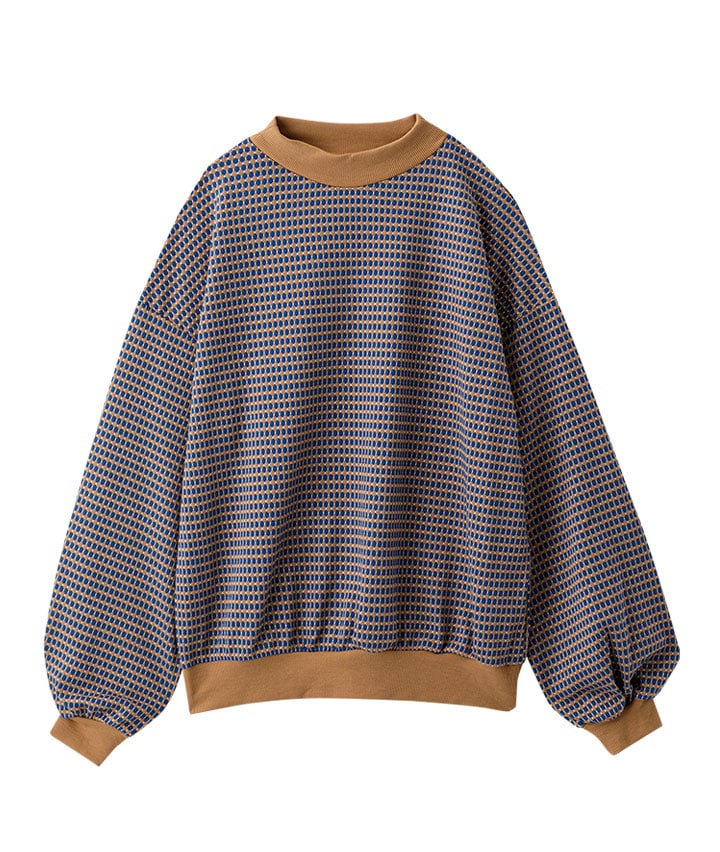 ・レトロな雰囲気のジャガード編みカットソー。配色のリブ切り替えでメリハリのあるデザインです。