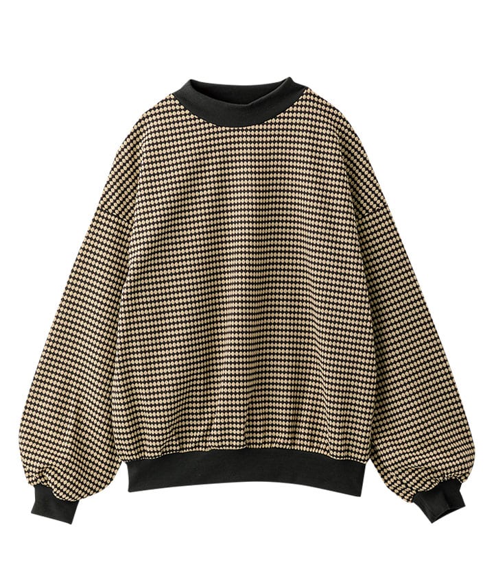・レトロな雰囲気のジャガード編みカットソー。配色のリブ切り替えでメリハリのあるデザインです。