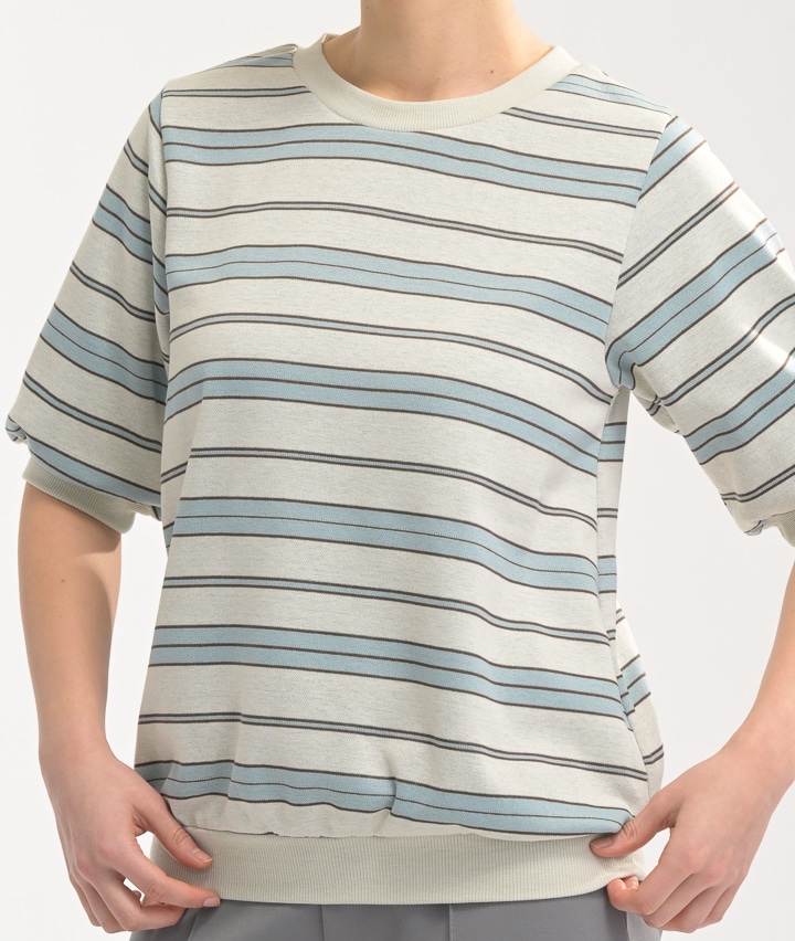 ・太めのボーダーと人気の色の組み合わせが、マリン感ある夏らしいアイテム。シンプルながらも一枚で決まる一着です