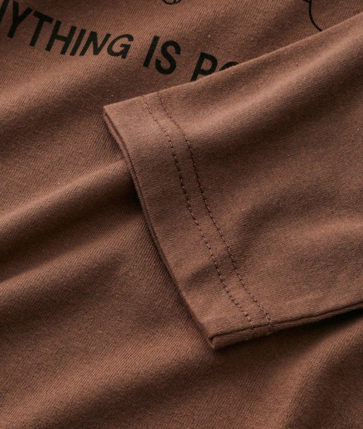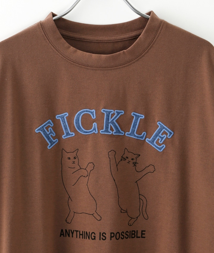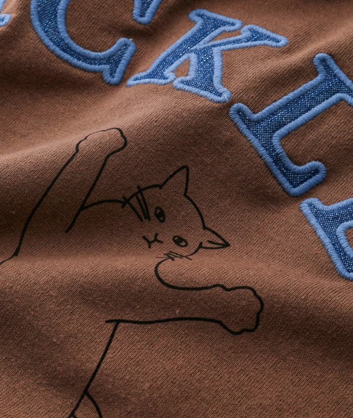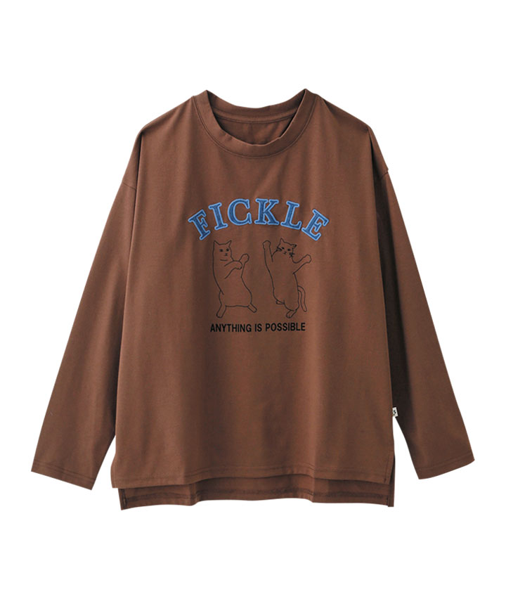 ネコプリント&デニムパッチワーク長袖T