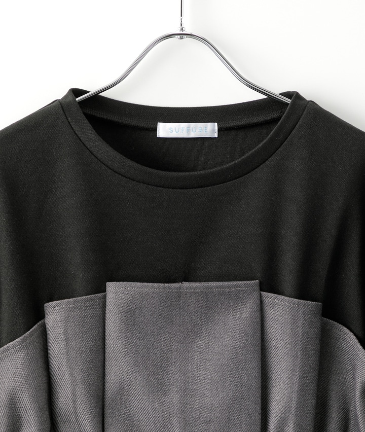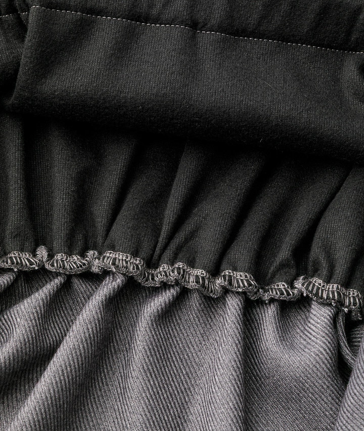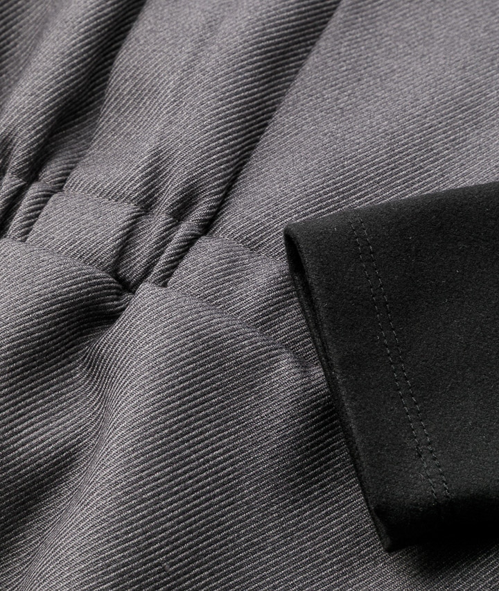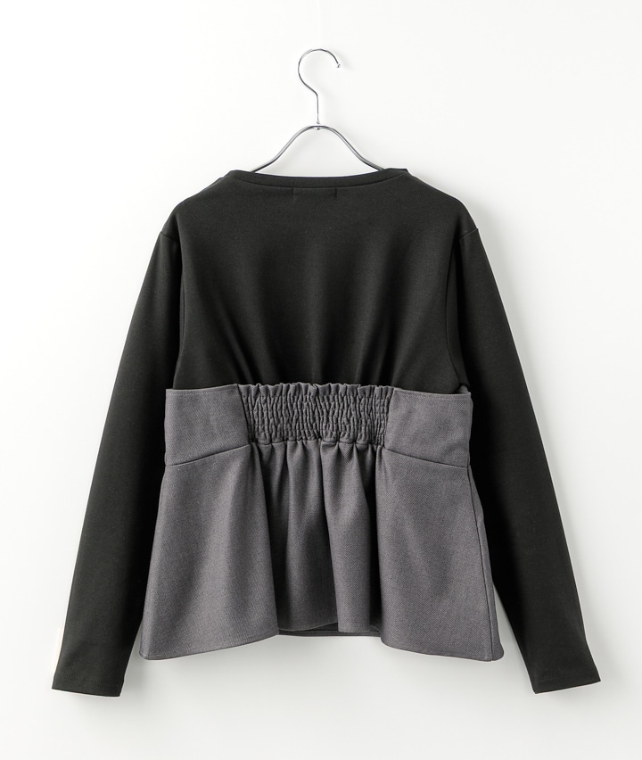 ・本体:ポリエステル85%、レーヨン10%、ポリウレタン5% 別布部分:ポリエステル80%、レーヨン20% リブ部分:ポリエステル85%、レーヨン10%、ポリウレタン5%