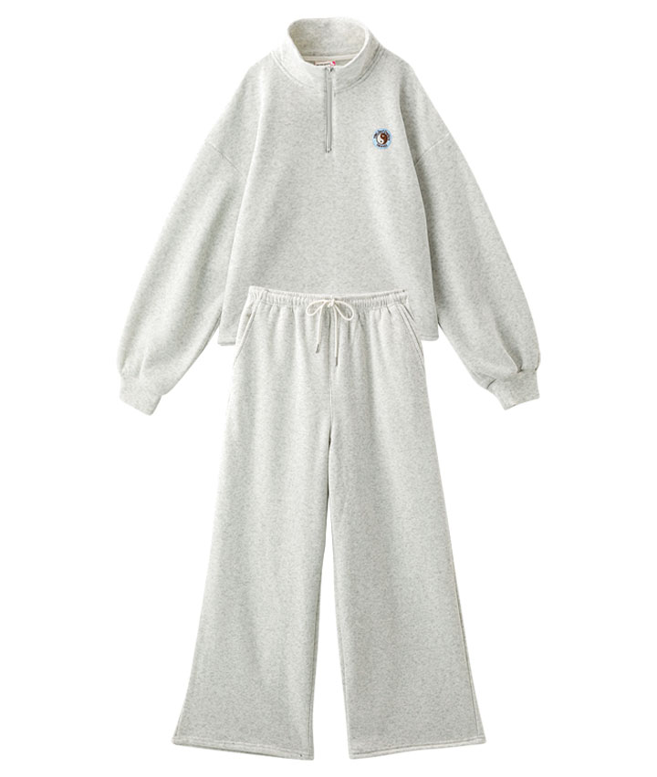・ハーフジップトレーナーとワイドパンツのセットアップです。
