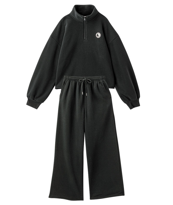 ・ハーフジップトレーナーとワイドパンツのセットアップです。