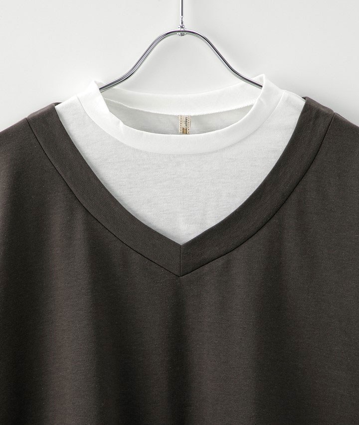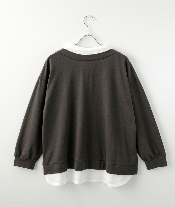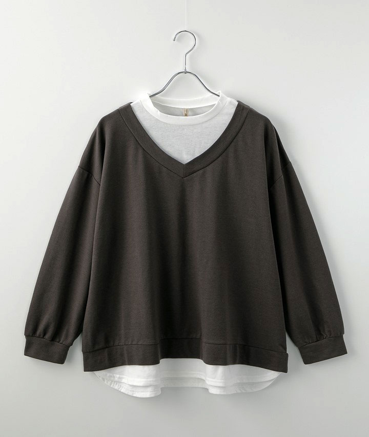 Vネック裏毛フェイクプルオーバー