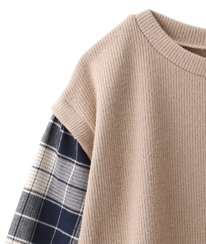 ・起毛感のある素材のフェイクレイヤードプルオーバーです。