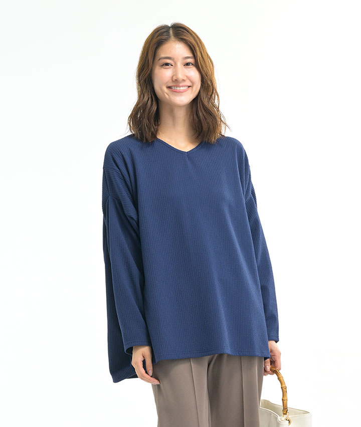 【着るだけでステキに変身トップス】ストライプジャカードプルオーバー