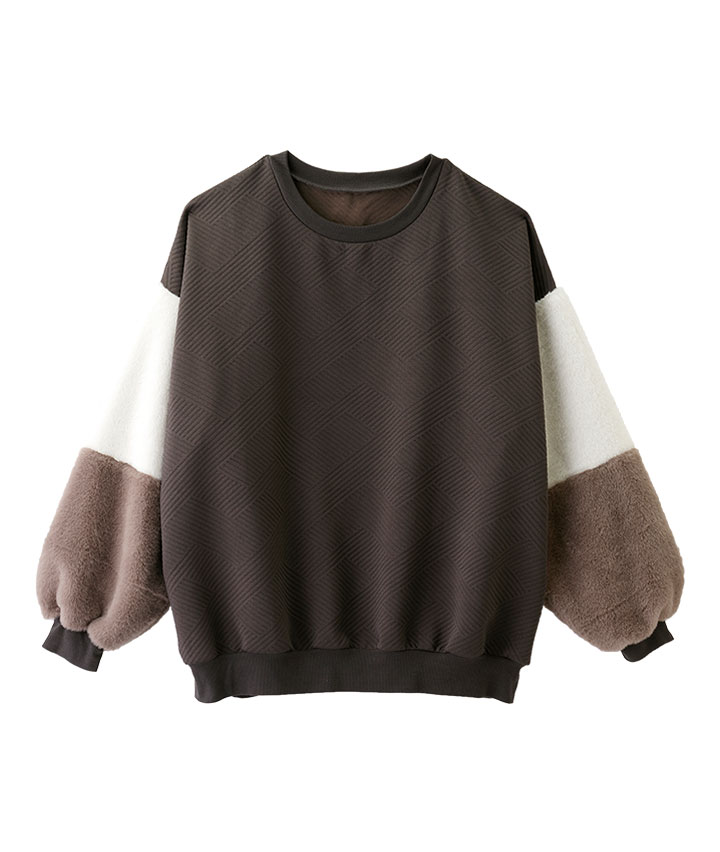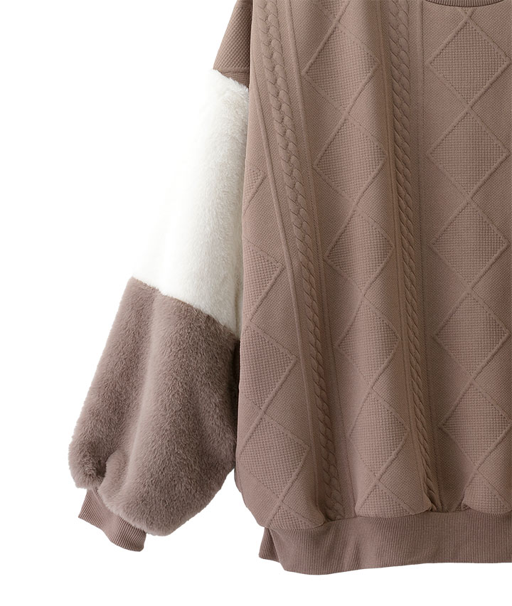 ・袖のファーが温かみとカジュアルさを表現。ジャケットやブルゾンの下にも着られるプルオーバーです。