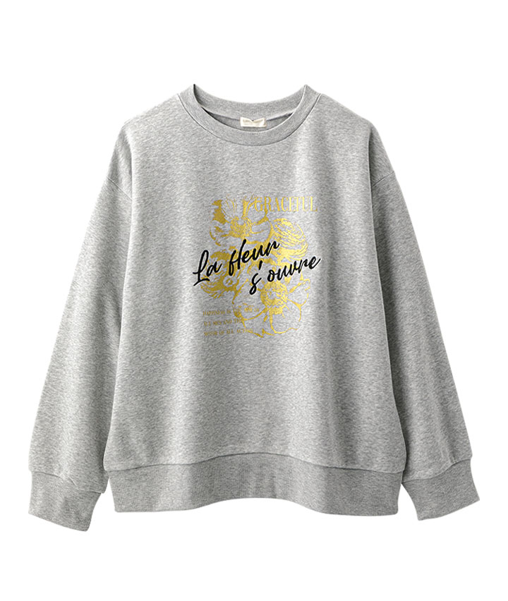 ・フロントに潔くプリントされたかすれ箔花デザインがこなれ感抜群。抜け感のあるビッグシルエットで体のラインも拾いません。