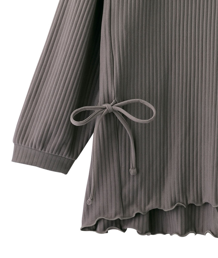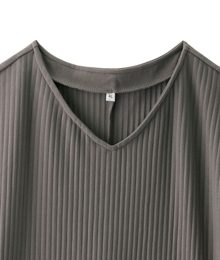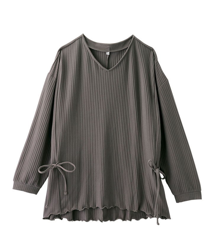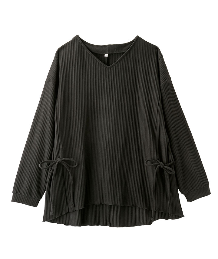 (大きいサイズ)【すっきりメイクトップス】起毛プリーツ脇リボンプルオーバー