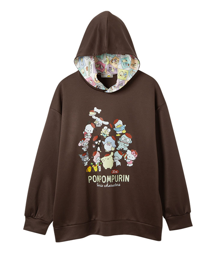 ・フロント、フード裏にポムポムプリンの総柄がプリントがされているプルパーカです。