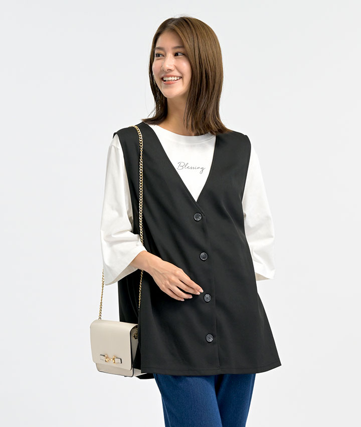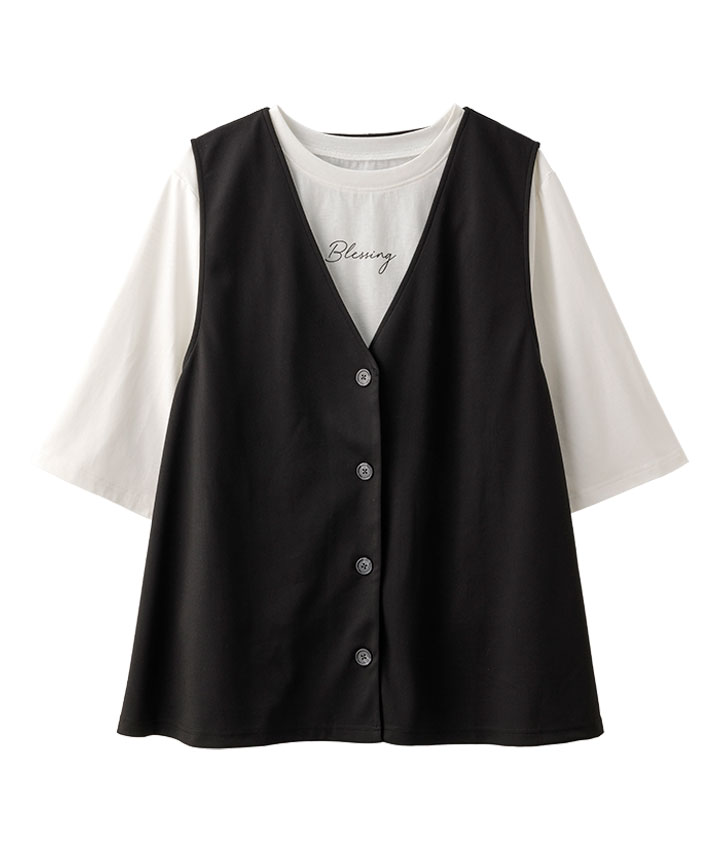 (大きいサイズ)ジレT+Tシャツセット