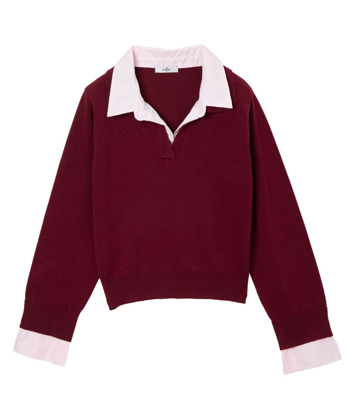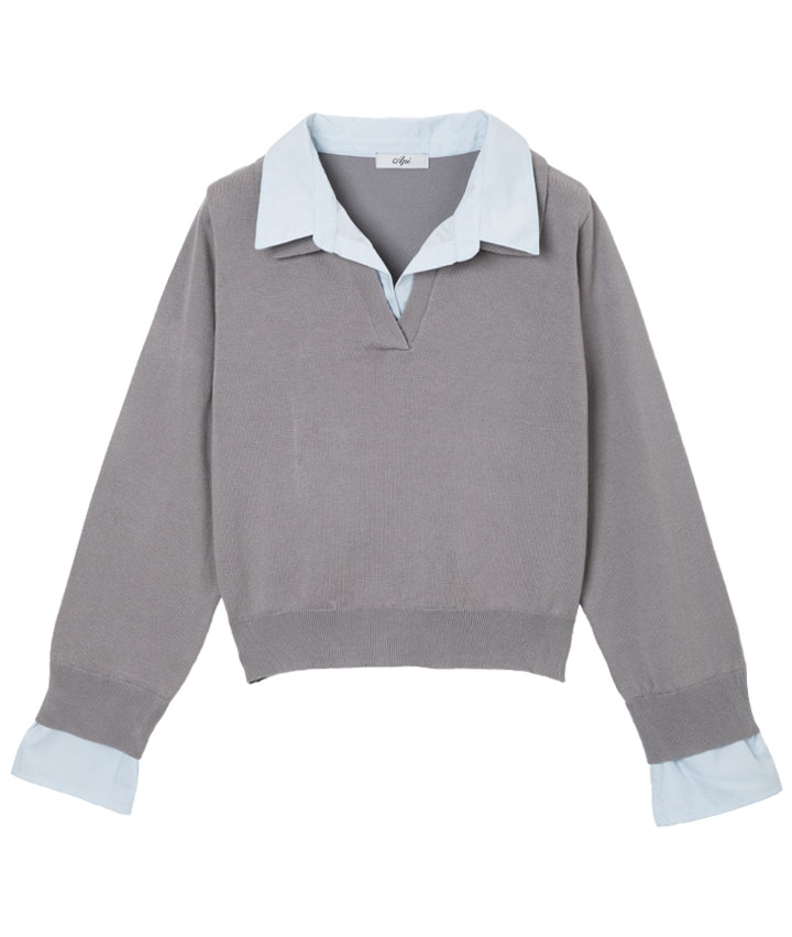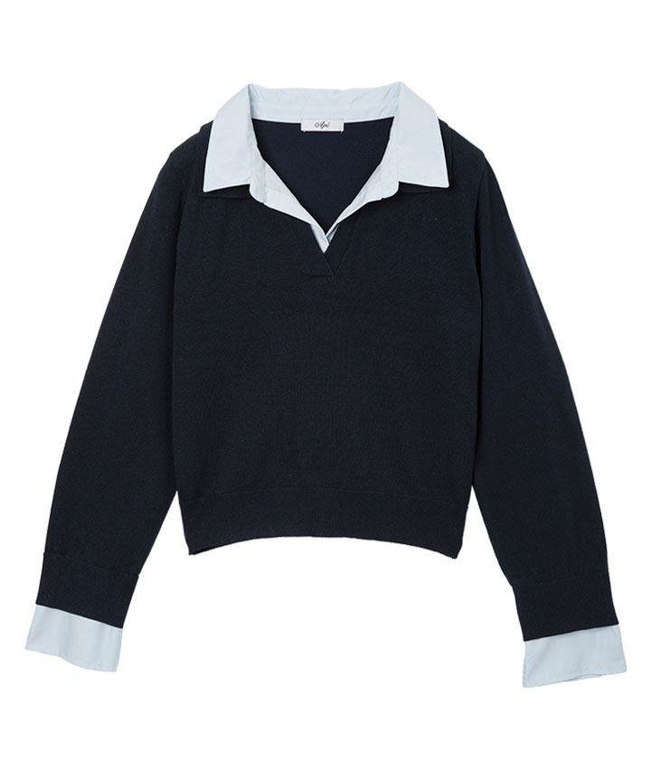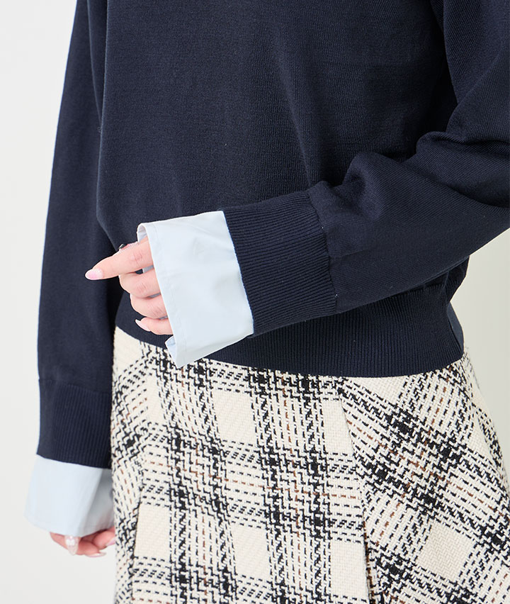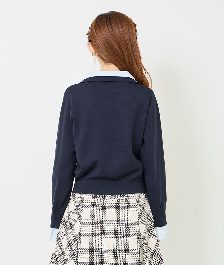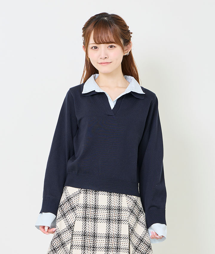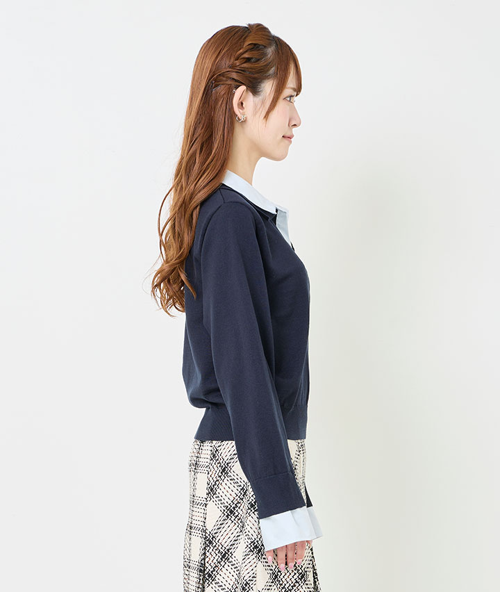 ・シャツ×ニットのレイヤード風デザインで、1枚でこなれ感のあるスタイルが完成。合わせやすい丈感でスタイルアップ効果もあり、スカートにもパンツにも好相性です。