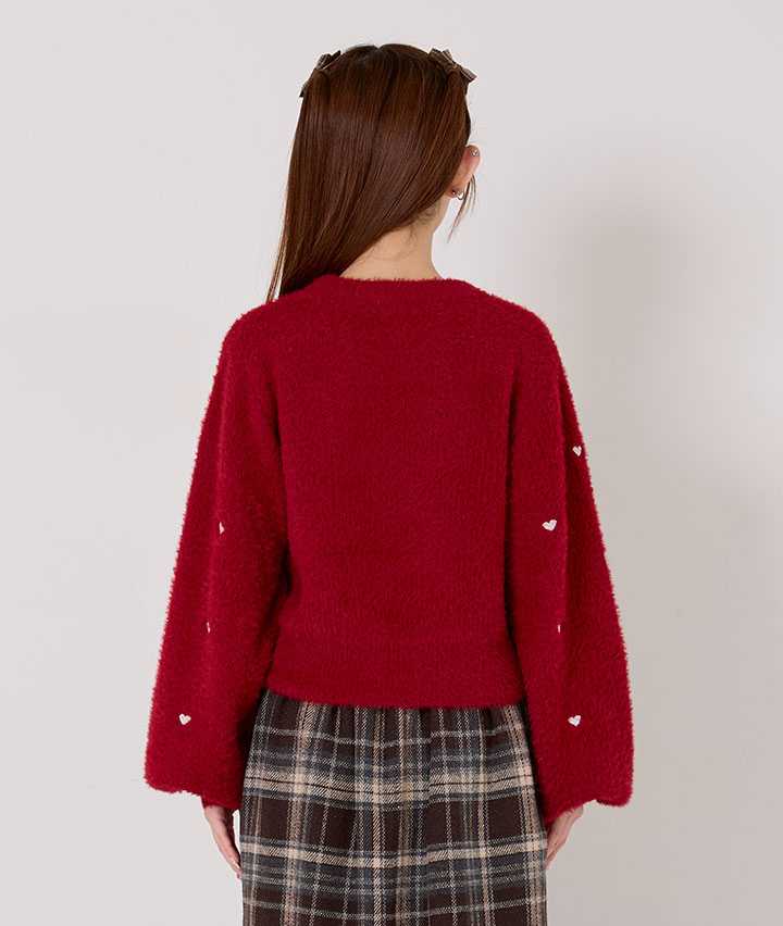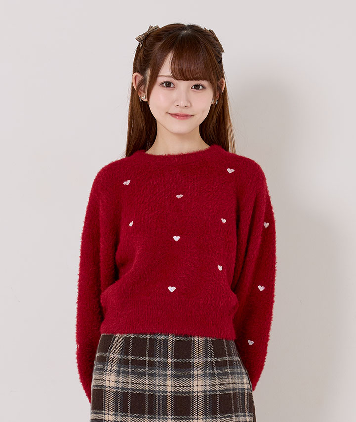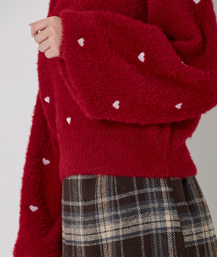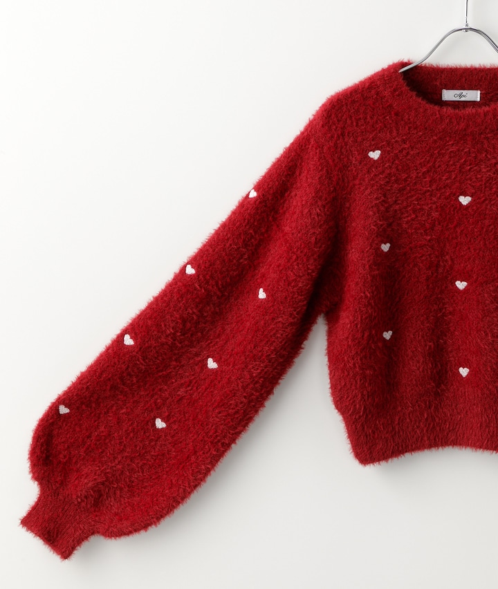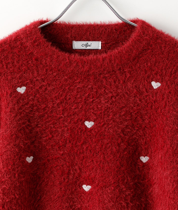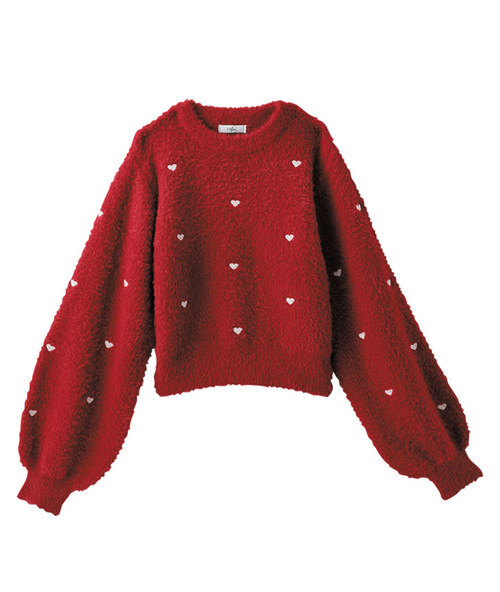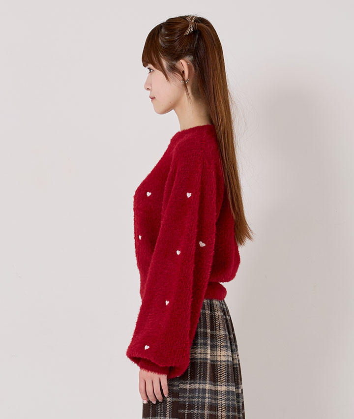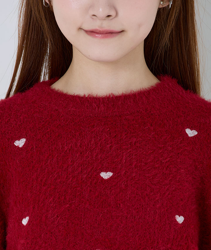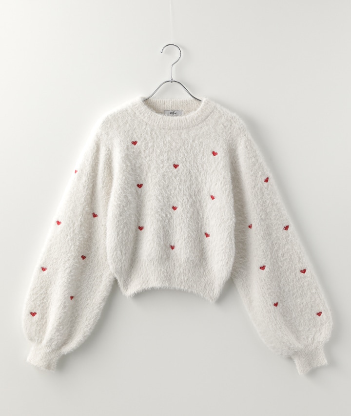 ・ふわふわフェザーニットに小さなハート刺繍が散りばめられた、大人可愛いプルオーバー。