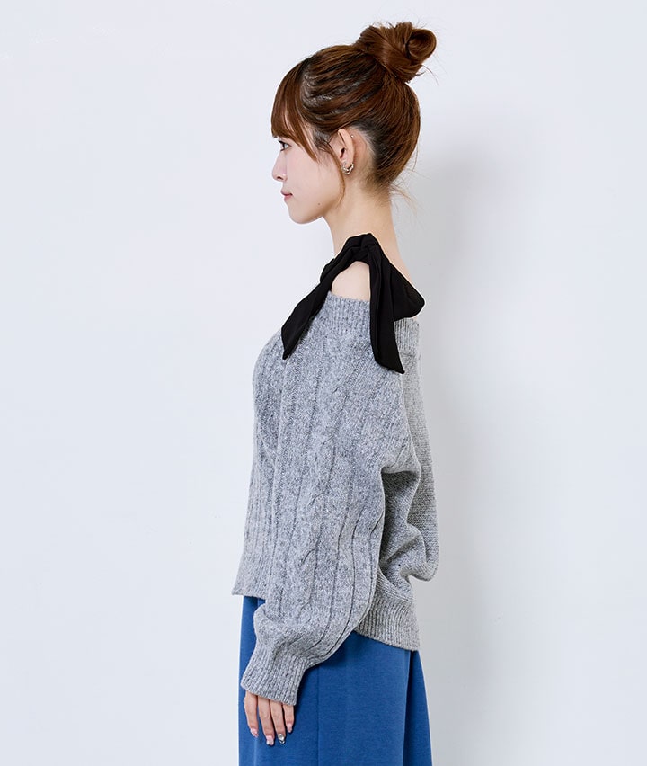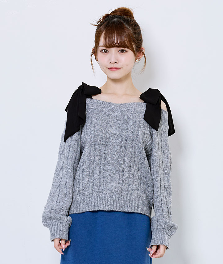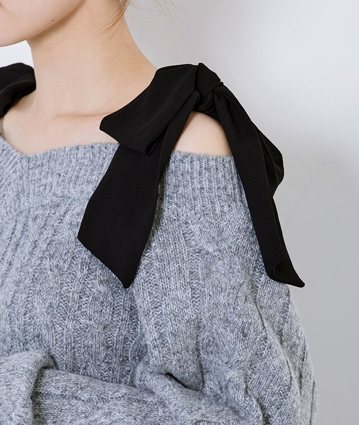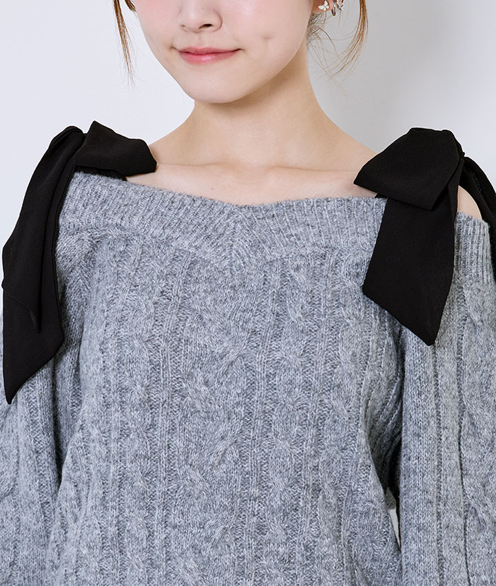 【10/22(水)10:00販売開始】肩リボンケーブルニット