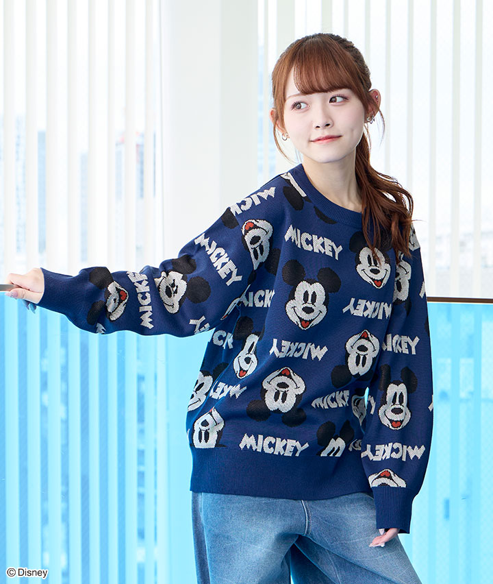 【Disney】(ミッキーマウス)総柄ニットプルーバー
