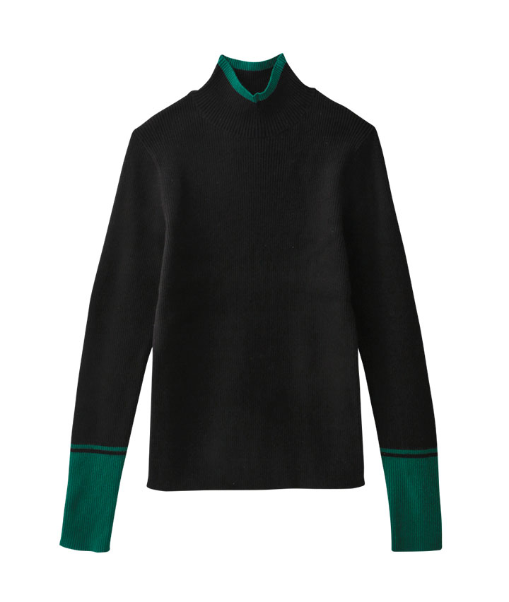 ・袖のランダムな配色がかわいいニットプルオーバー。レイヤードとしても重ね着に活用できます。