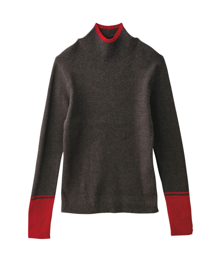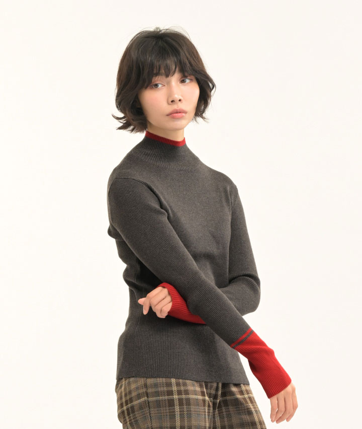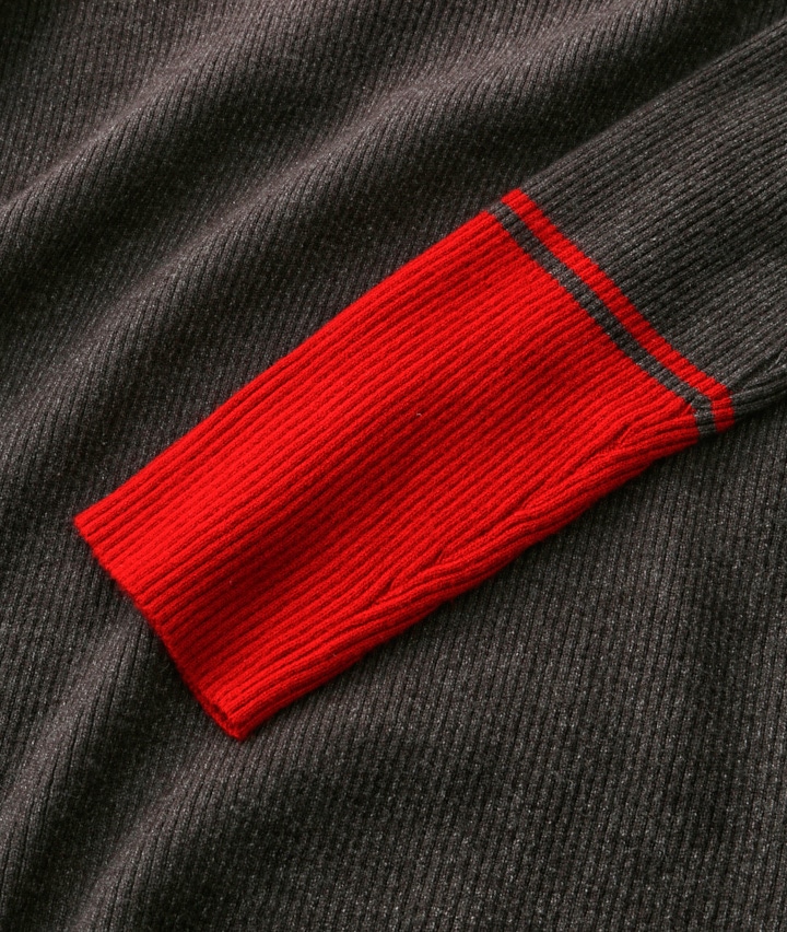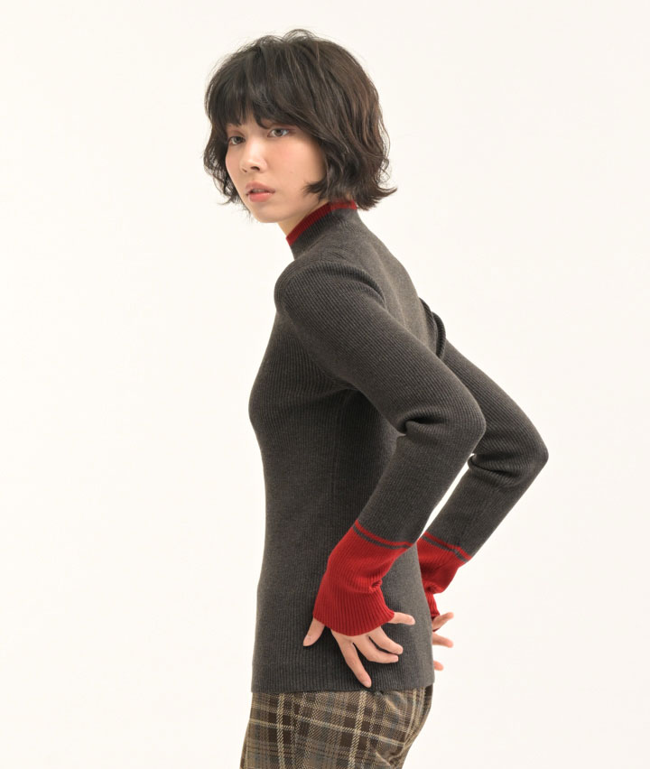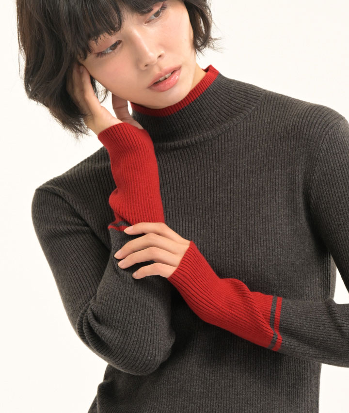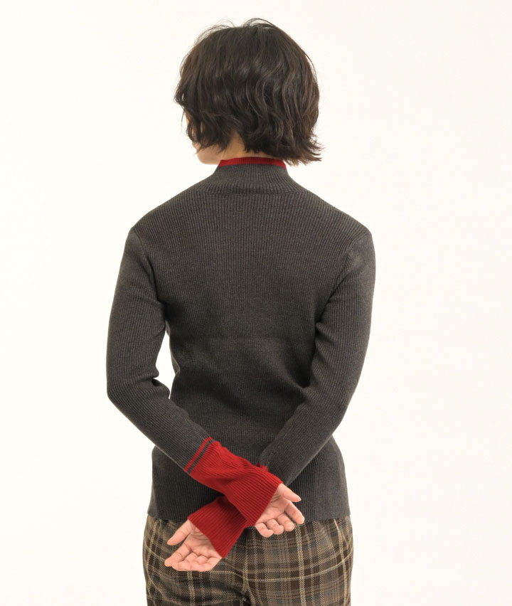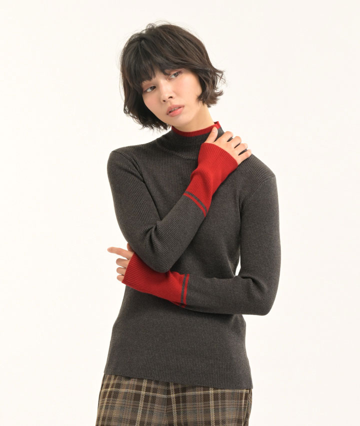・袖のランダムな配色がかわいいニットプルオーバー。レイヤードとしても重ね着に活用できます。
