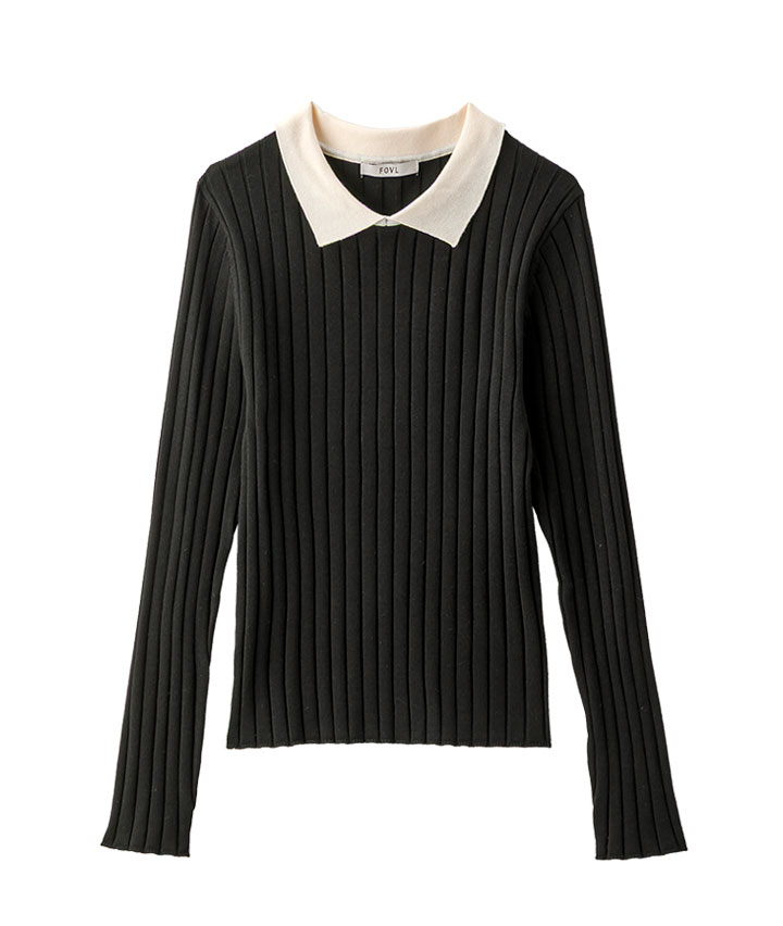 襟付きリブニット
