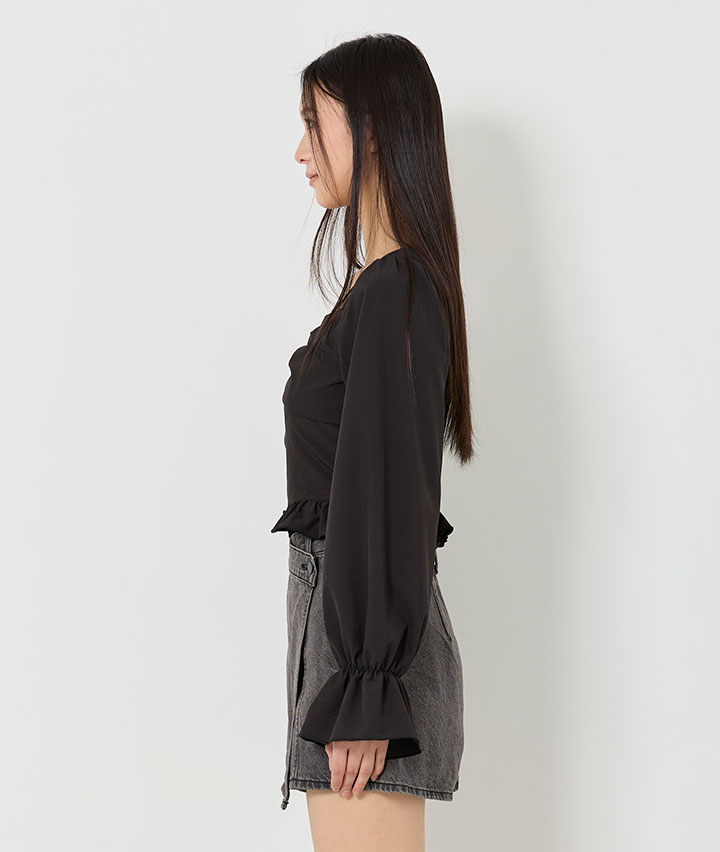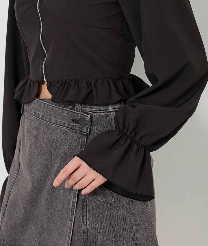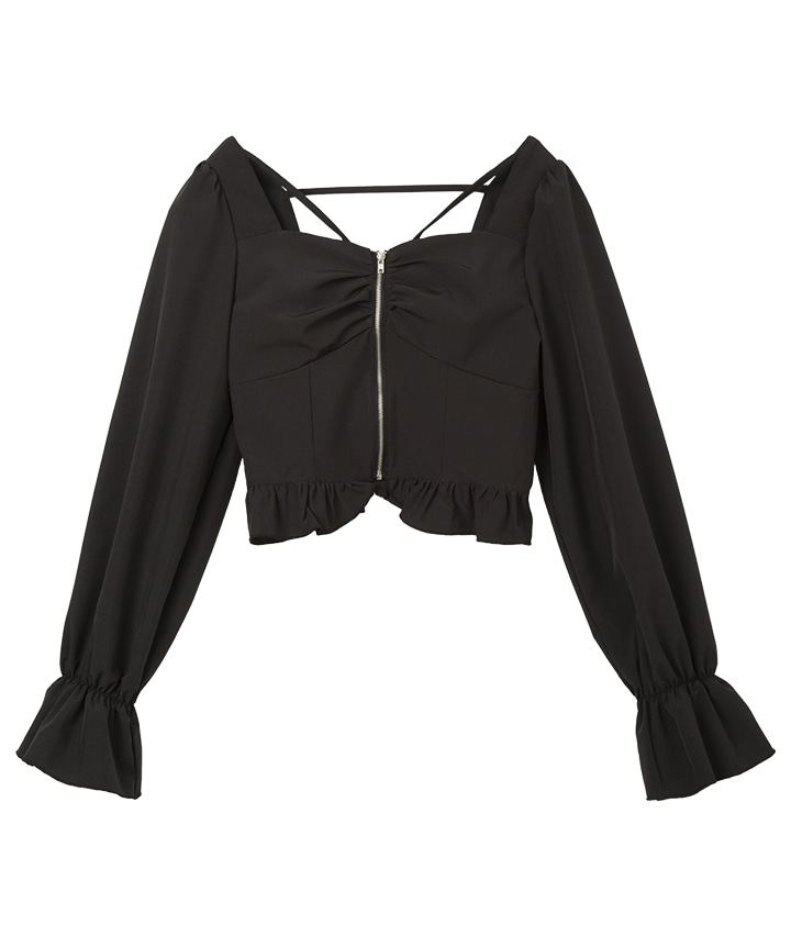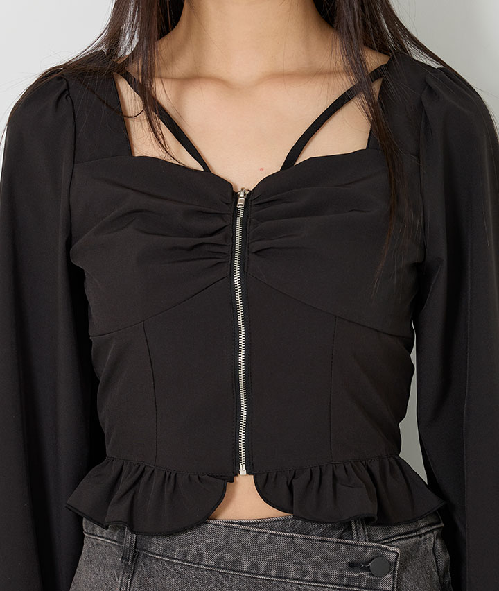 ・フロント部分のジップディティールがこなれ感を演出。トレンドっぽさのつまったブラウスです。