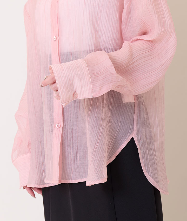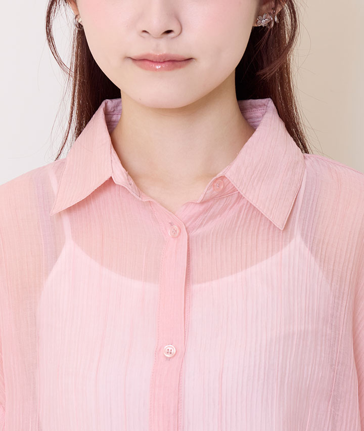 ・こなれた透け感がポイントのシアーシャツ。春らしいカラーバリエーションです。