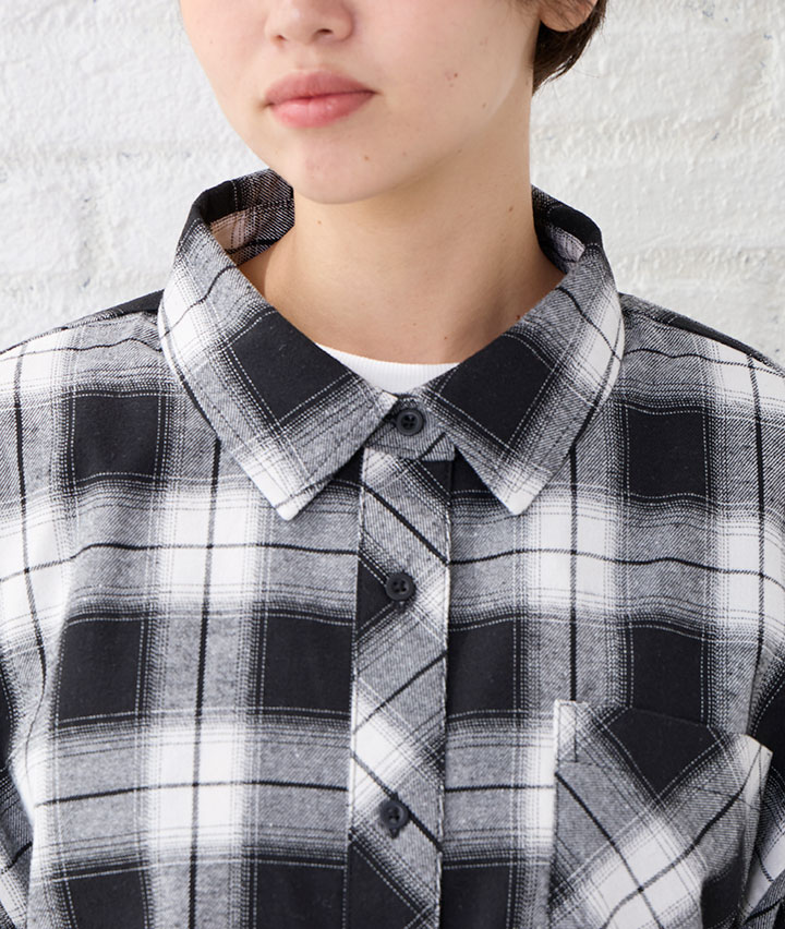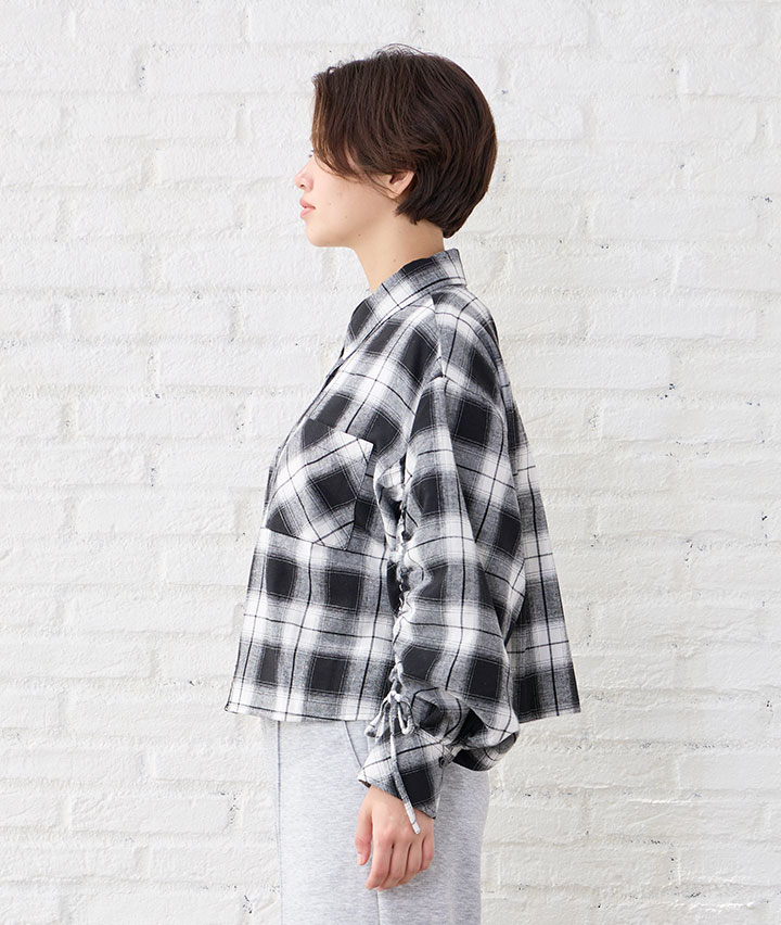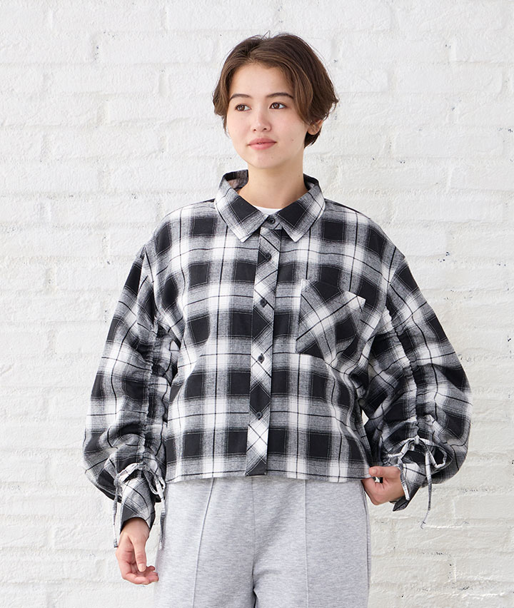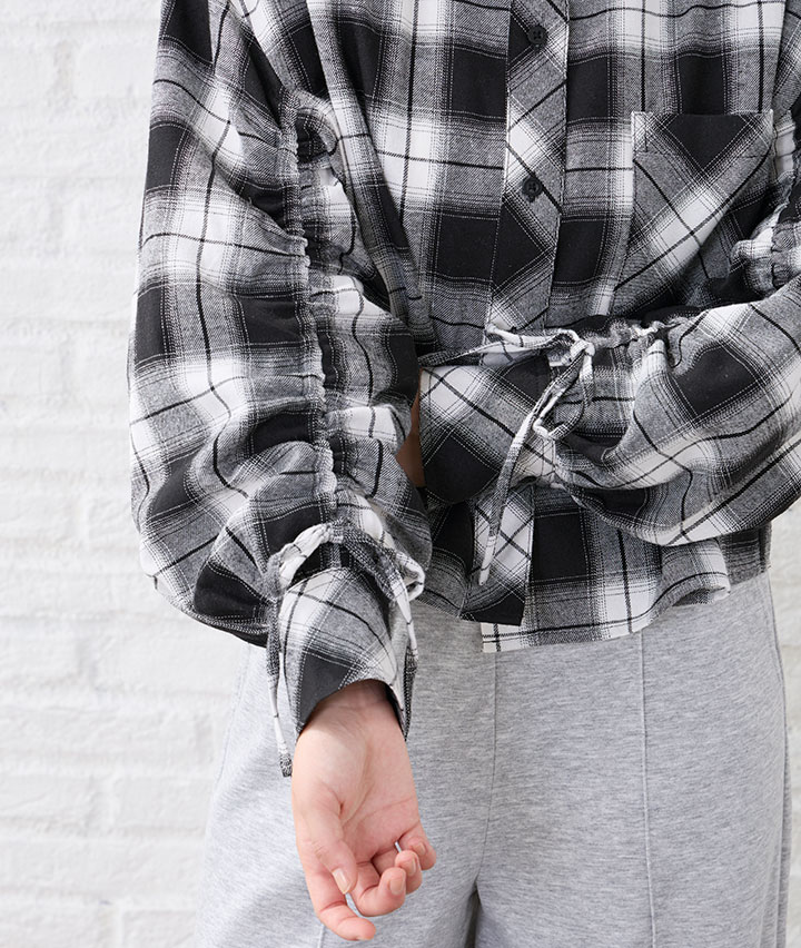 ・たっぷり入ったギャザーデザインがこなれ感のあるチェックシャツ。立体的でふんわりとしたシルエットが体型カバーをしつつ動きのある柔らかな印象を与えるアイテム。