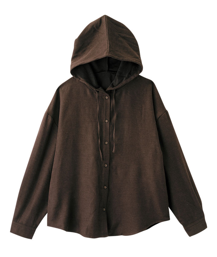 ・大きめなシルエットで肌寒いときにもぴったりのシャツです。フード仕様なのでプルオーバーやアウターのインナーにも◎