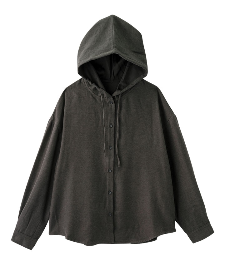 ・大きめなシルエットで肌寒いときにもぴったりのシャツです。フード仕様なのでプルオーバーやアウターのインナーにも◎