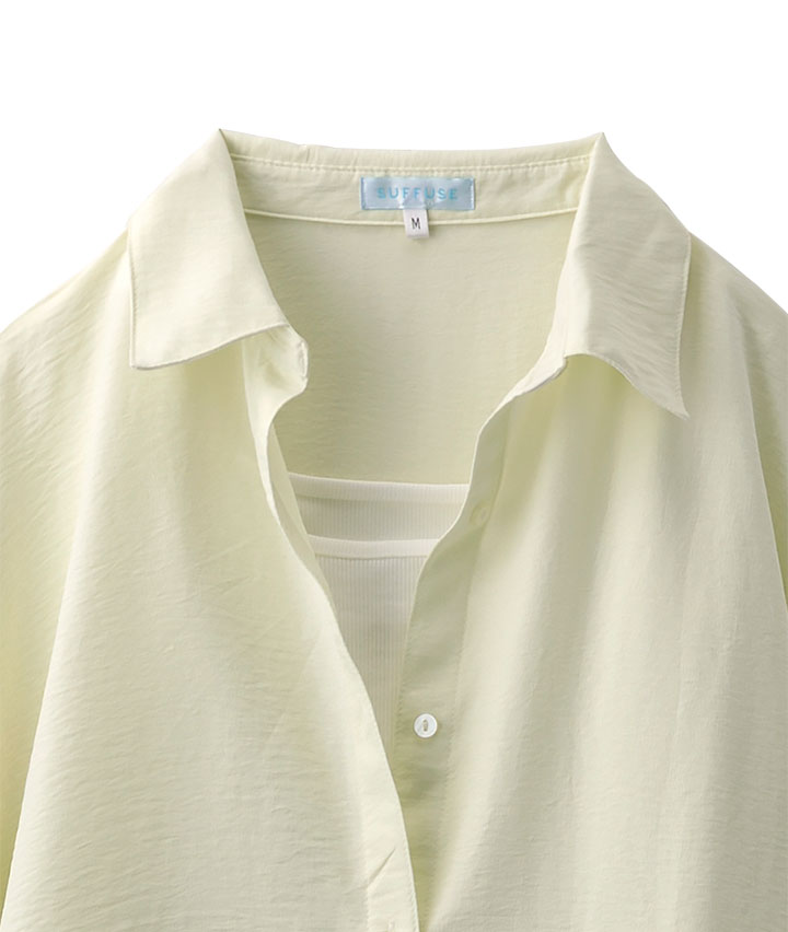 ・軽やかな素材のシャツ+無地タンクトップのセットアイテム。単品使いも可能なため、手持ちアイテムと合わせればコーデの幅も広がります。