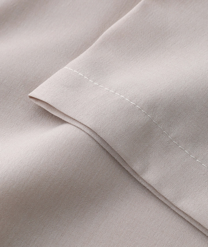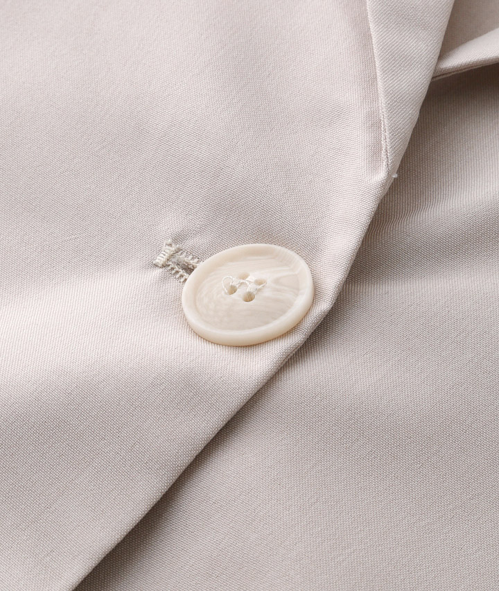 ・夏まで涼しく着ていただけるように、リネンのような素材を使用しました。裏地なしの一枚仕立てに、やや透け感をプラスしたことで、涼し気な印象をプラス〇
