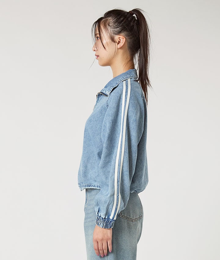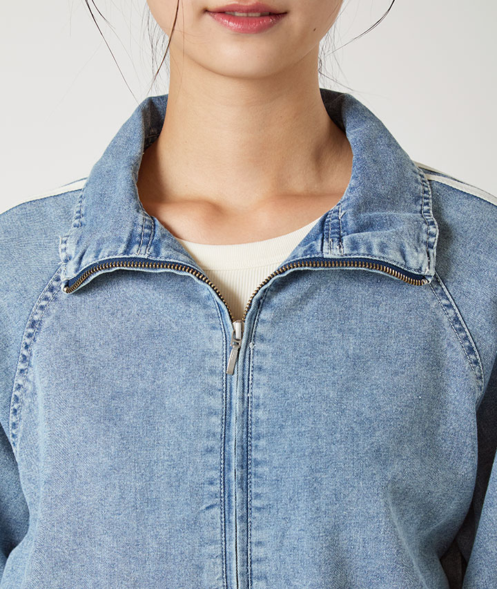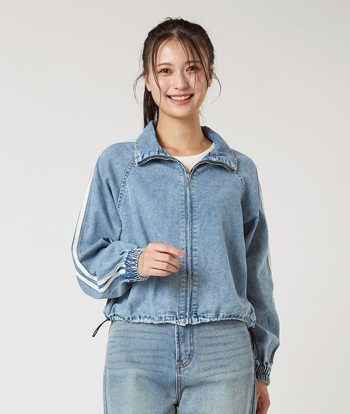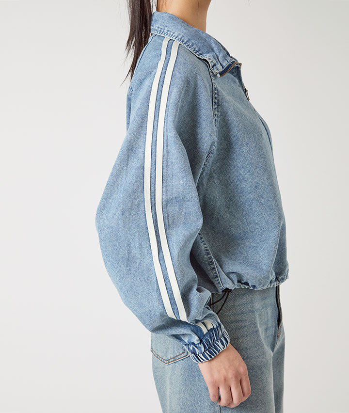 ・ライン入りデニムのトラックジャケットです
