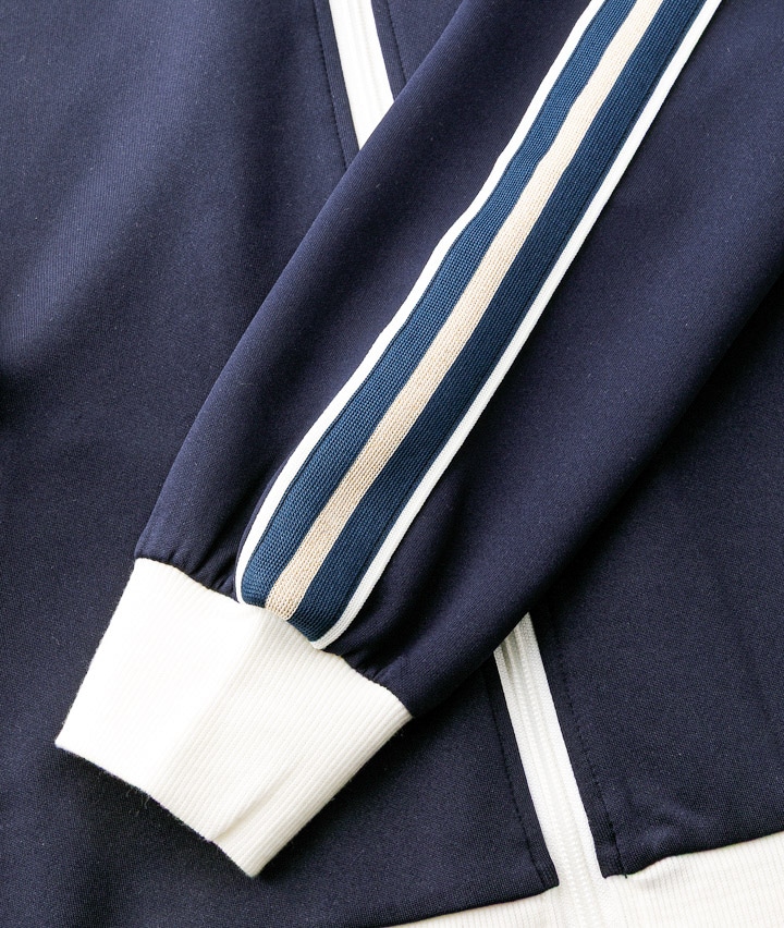 ・トレンド感のあるスポーティーなトラックジャケットです。\nスリーブにはテープでラインをほどこしています。\n3シーズン着用可能で冬はレイヤードアイテムとしても着用頂けます。
