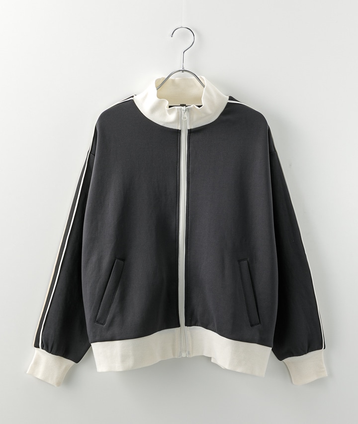 ・トレンド感のあるスポーティーなトラックジャケットです。\nスリーブにはテープでラインをほどこしています。\n3シーズン着用可能で冬はレイヤードアイテムとしても着用頂けます。