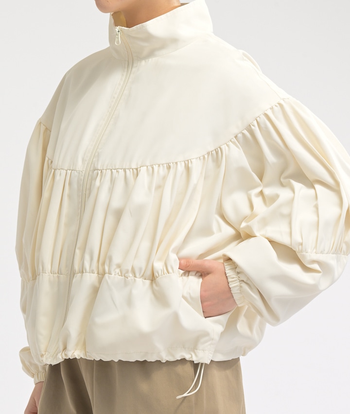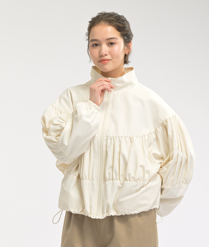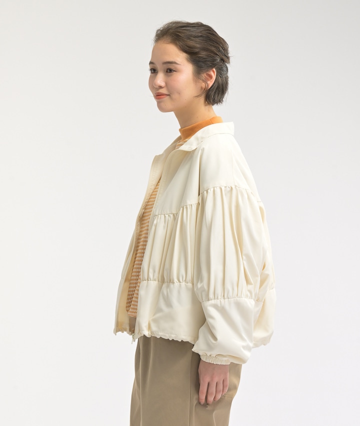 ・丸みのあるバルーンシルエットで、体型をさりげなくカバー。ゆったりとしたボリューム感が上品なこなれ感を演出し、前開きジップでカジュアルに着こなせます。