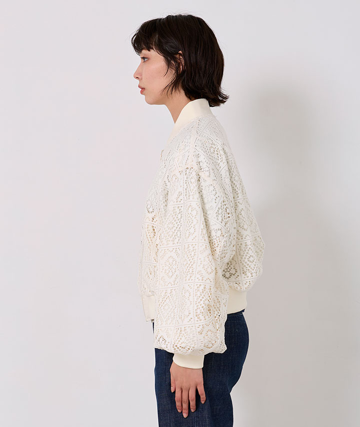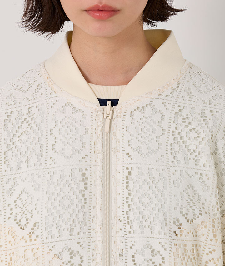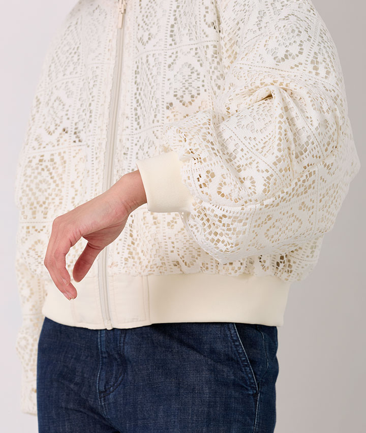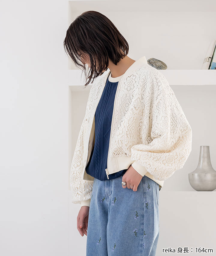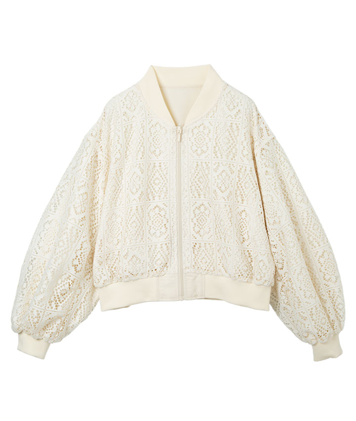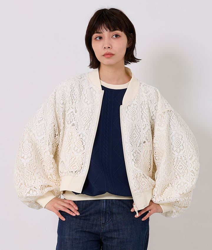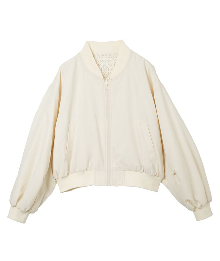 ・その日のスタイリングによってリバーシブルで楽しめるMA-1。トーンを合わせたレースデザインが甘くなりすぎない、カジュアルライクな1着です。