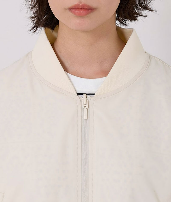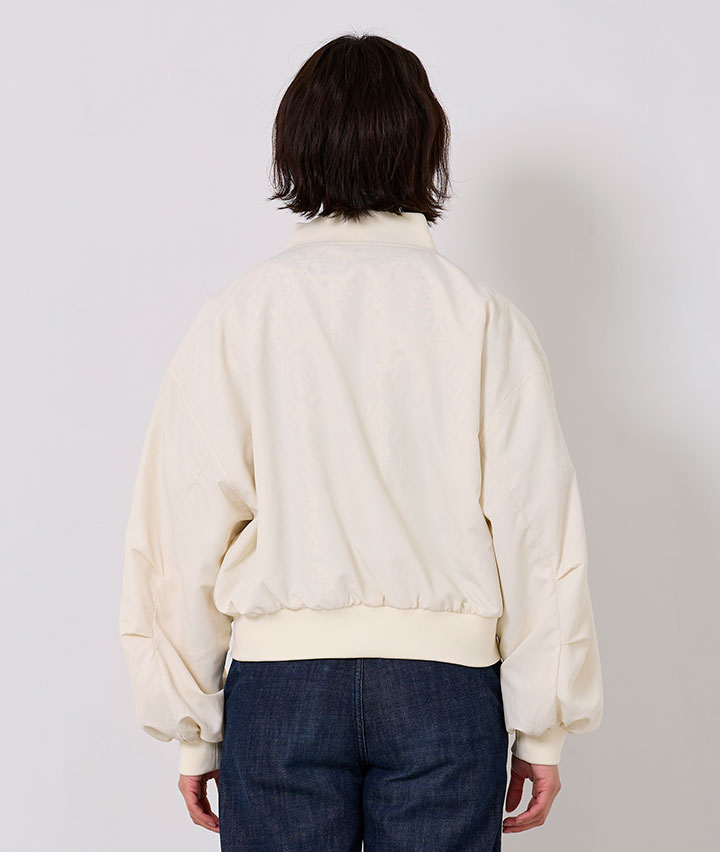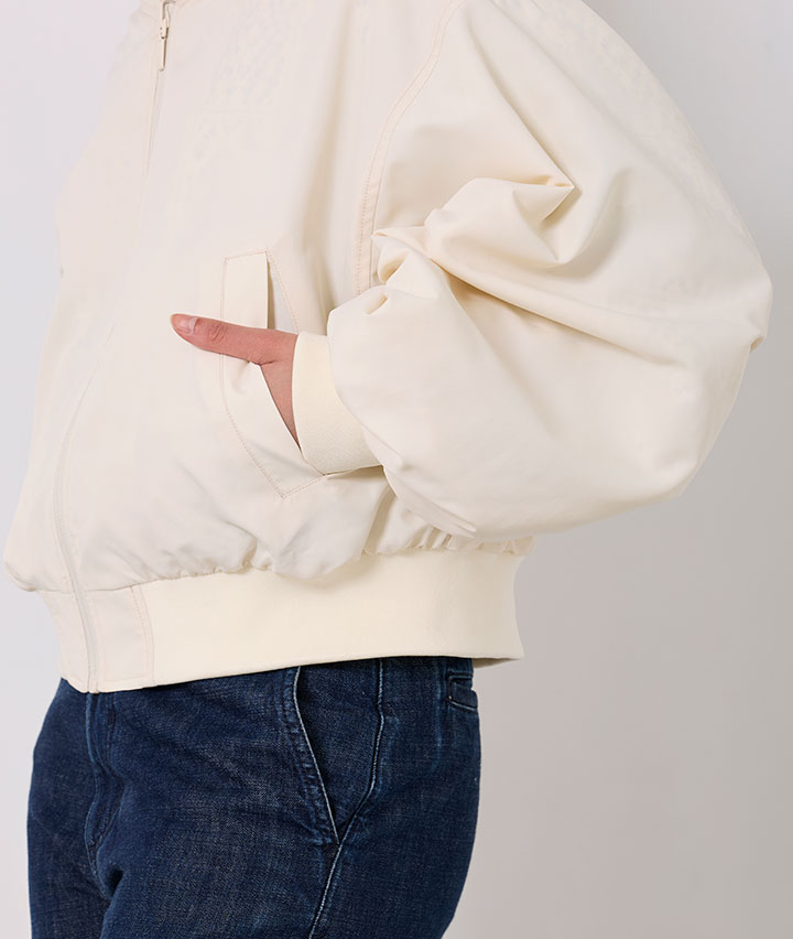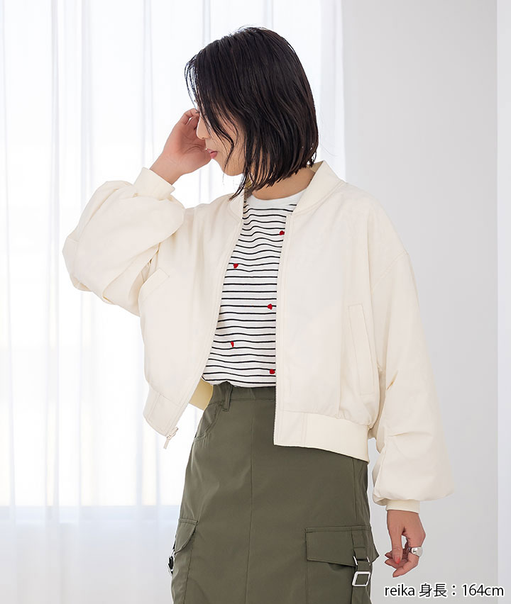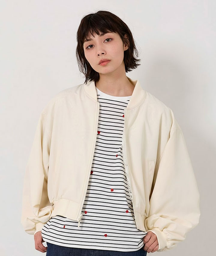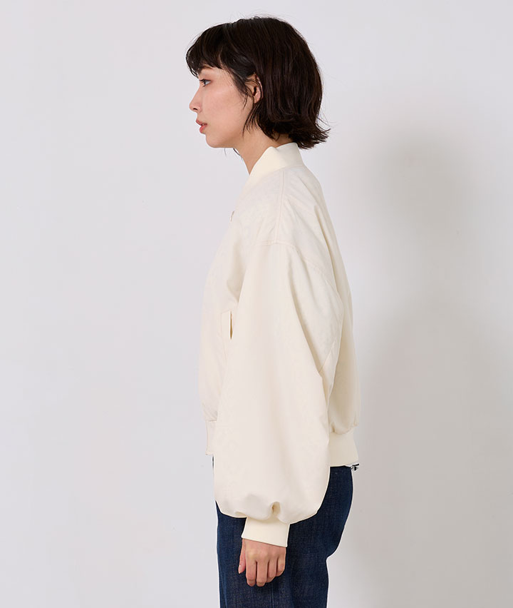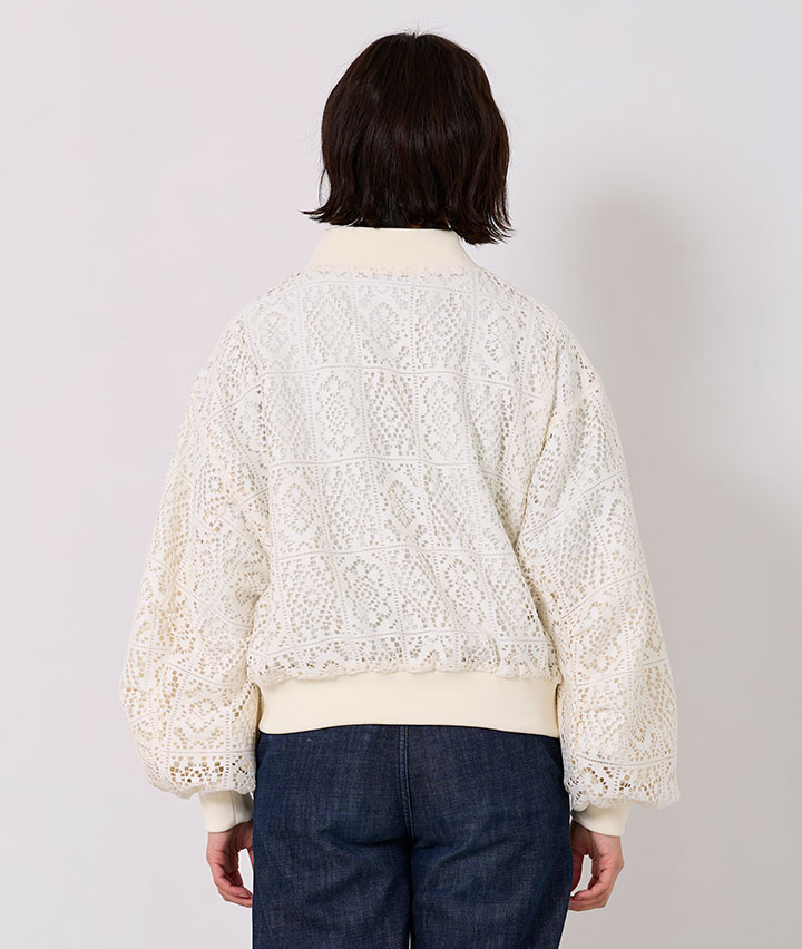 ・その日のスタイリングによってリバーシブルで楽しめるMA-1。トーンを合わせたレースデザインが甘くなりすぎない、カジュアルライクな1着です。