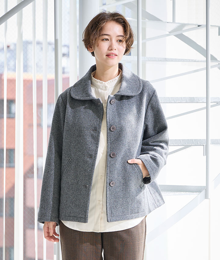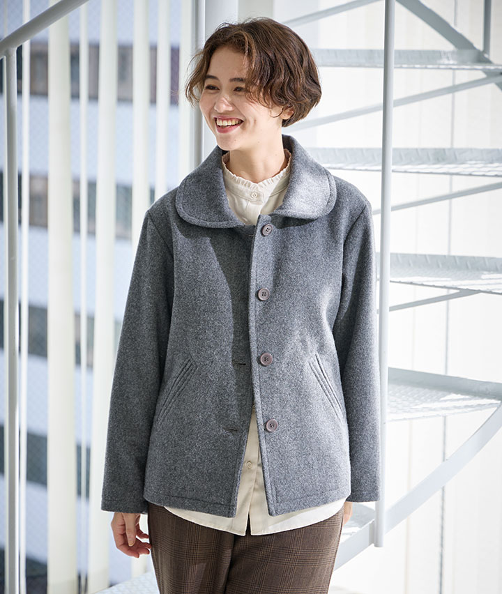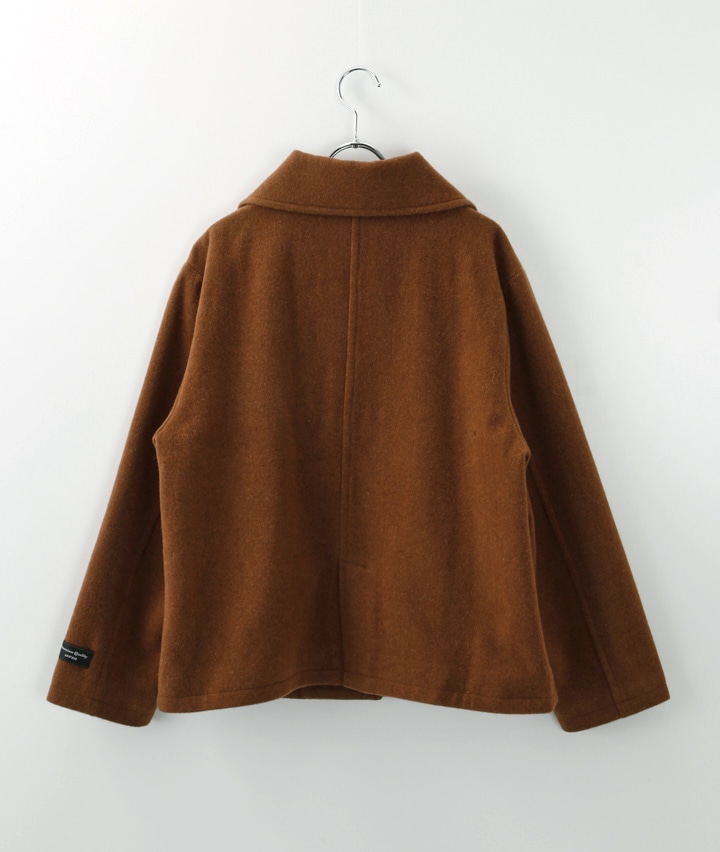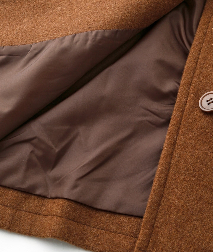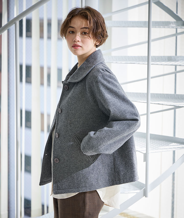 ・風合いの良い尾州ウール生地を使用したショートコート。飽きのこないシンプルなデザインで、様々なコーディネートを楽しめます。程よい着丈で、合わせるボトムスを選ばずに着ていただけます。