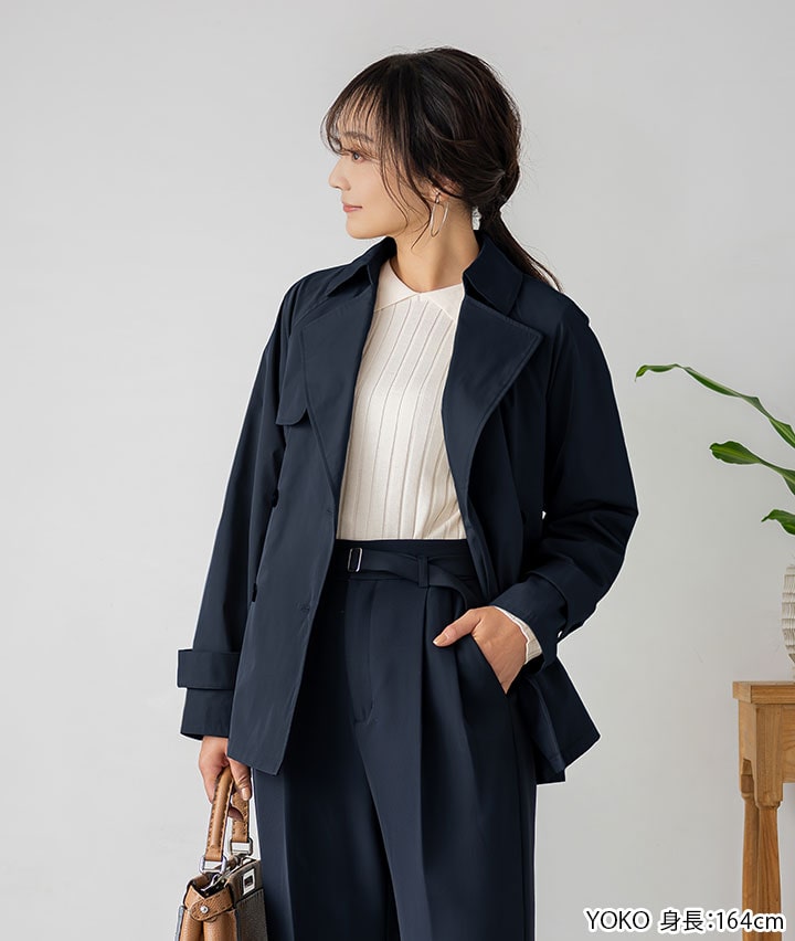 ・ライナー付きのショート丈トレンチコートは寒暖差の激しい時期にもってこいのアイテムです。