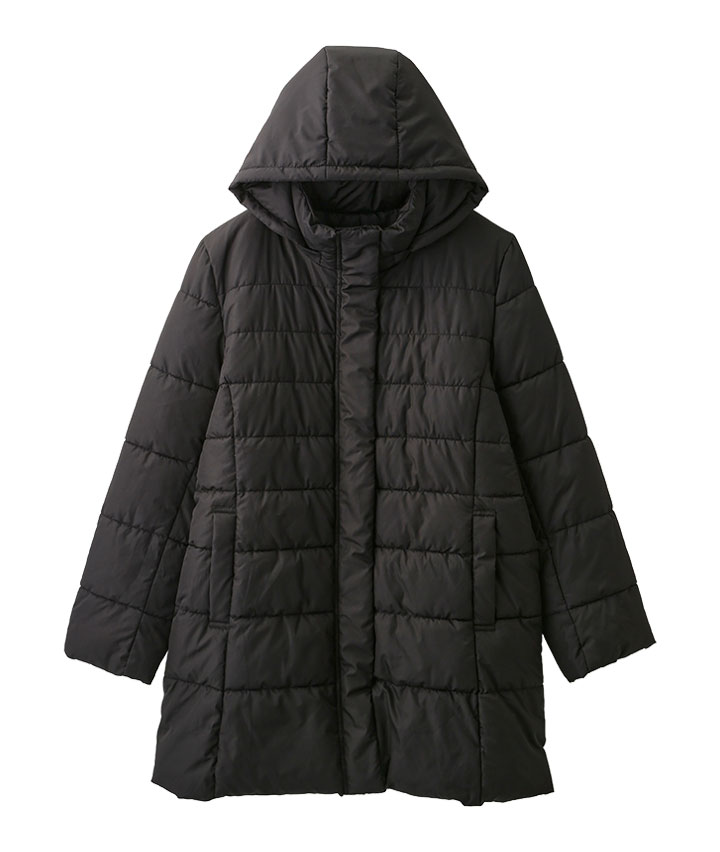 中綿フード付きロング丈コート