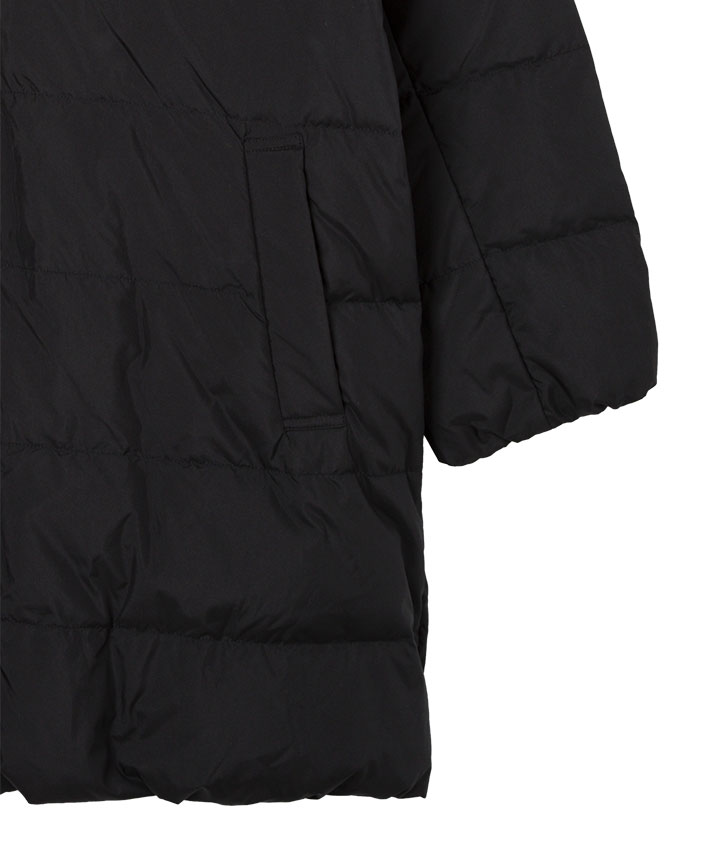 ・表地:ポリエステル100% 詰物:本体 ダウン70%フェザー30% フード、ポケット部分 ポリエステル100% 裏地:ポリエステル100% 別布:ポリエステル100%