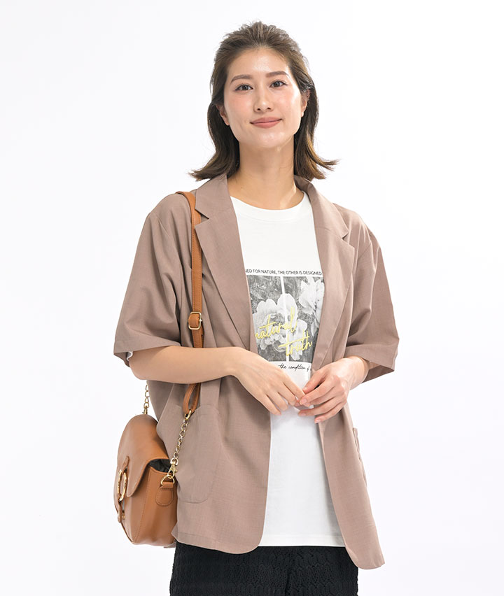 ・夏まで涼しく着ていただけるように、リネンのような素材を使用しました。キレイメでもカジュアルでも幅広く楽しんでいただけるアイテムです。