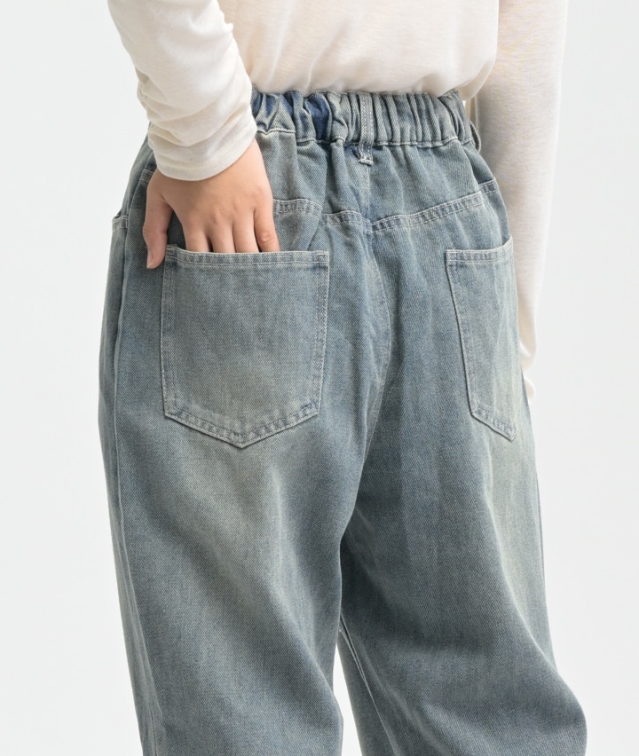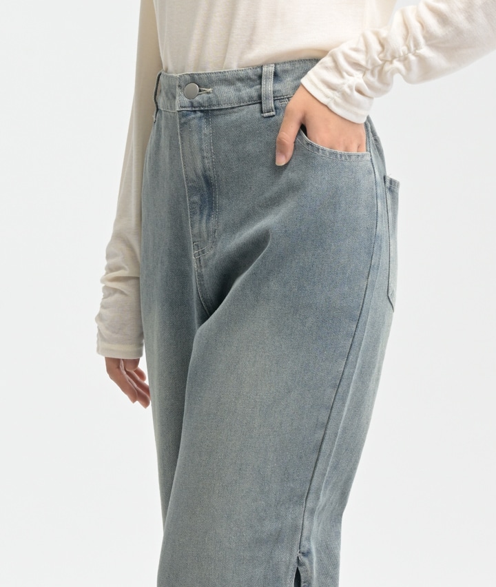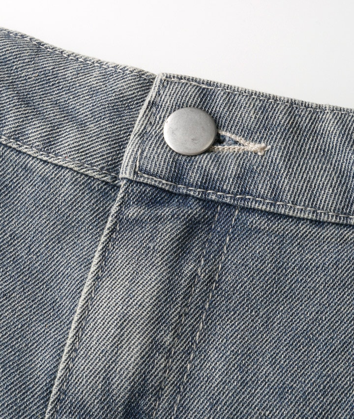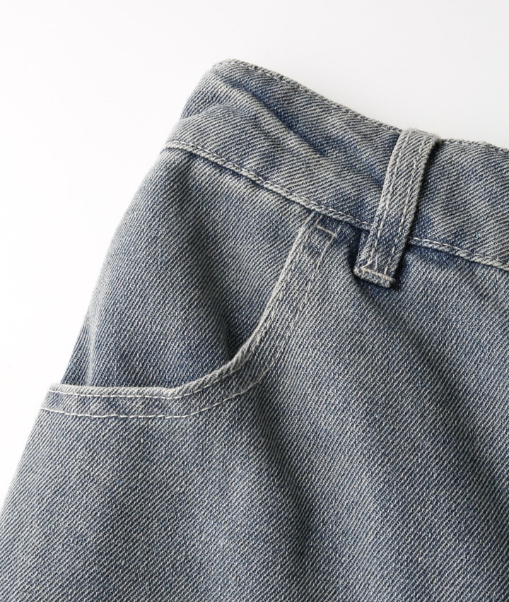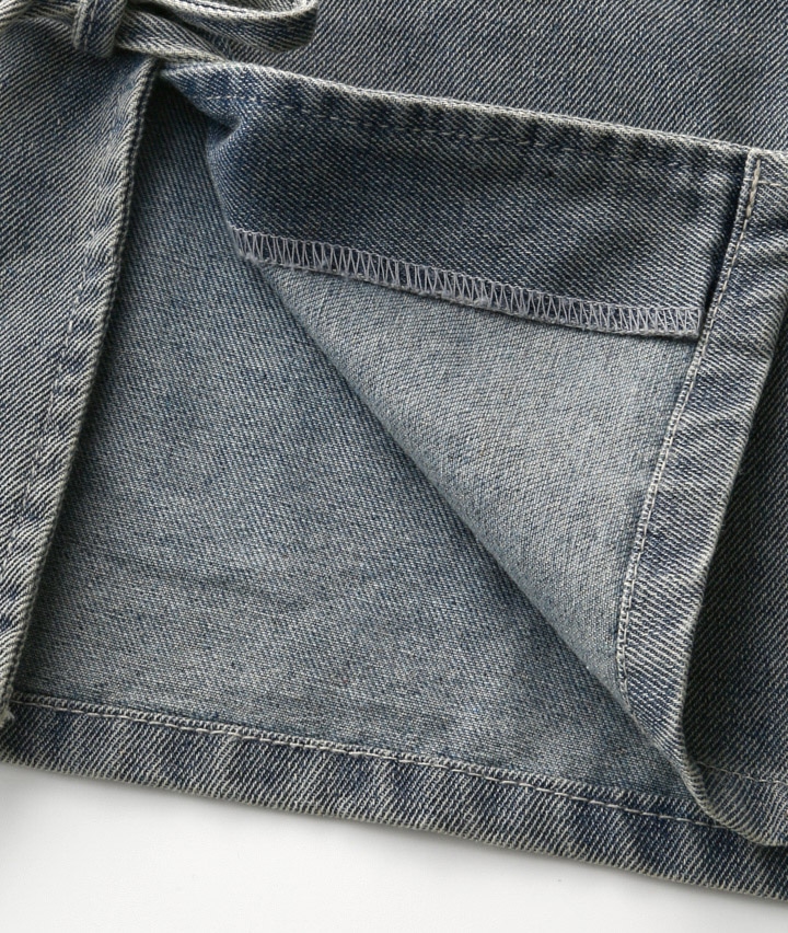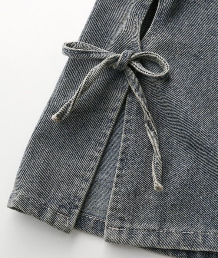 ・スソのスリットデザインとリボンが特徴のデニムパンツです