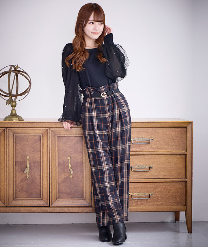 ・トレンドスタイル?やわらかいTR素材に微起毛加工であたたかいストレートパンツです。使いまわせるベルト付きが嬉しい1枚です。