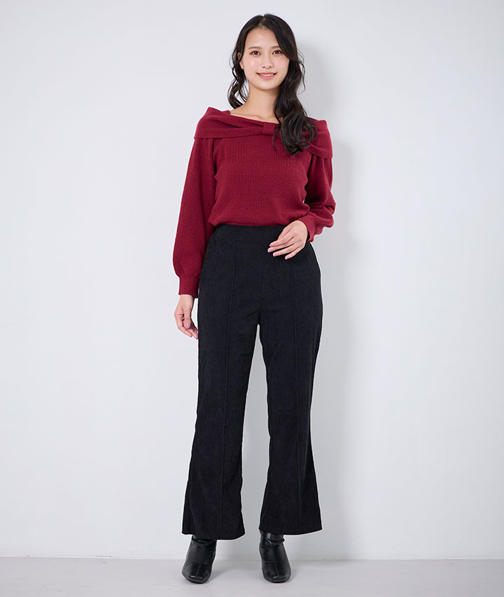 ・ウエストゴムでほどよいフレア感のある履きやすいパンツです