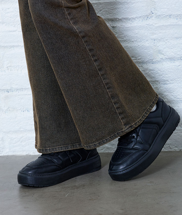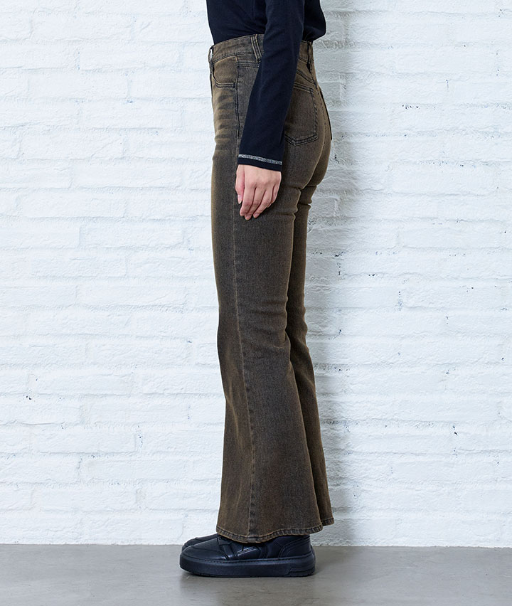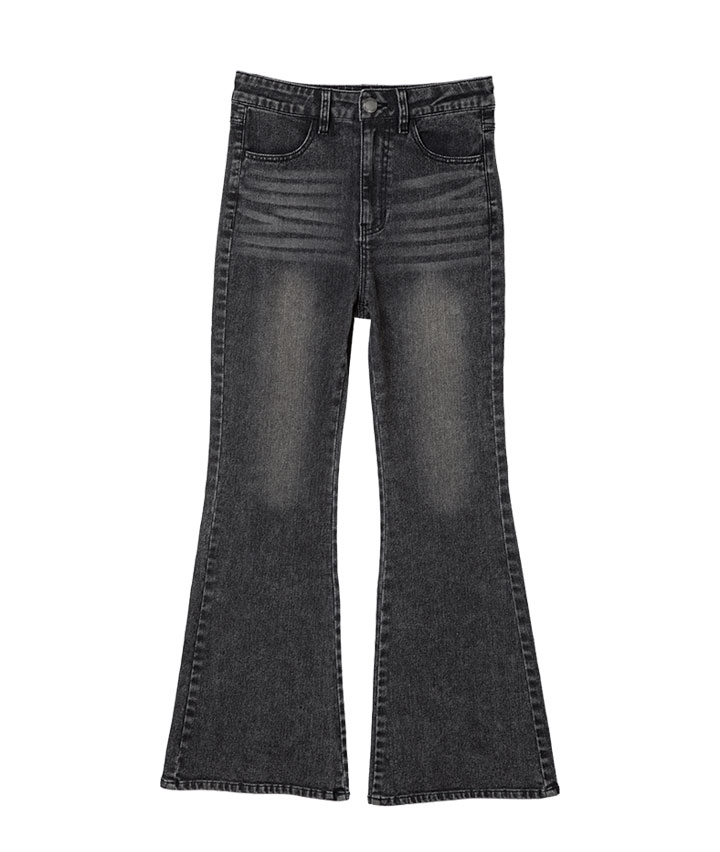 ・流行の加工を施したフレアパンツです。ストレッチが効いているので綺麗なフレア感が出せます。