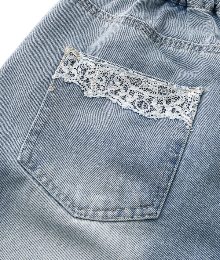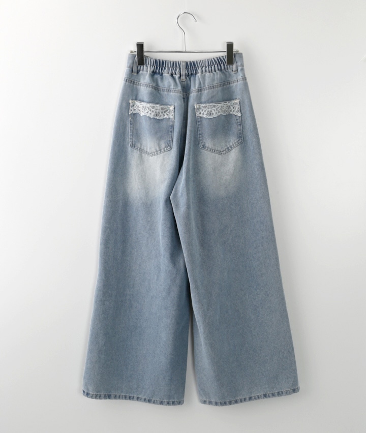 後ろレースデニムパンツ